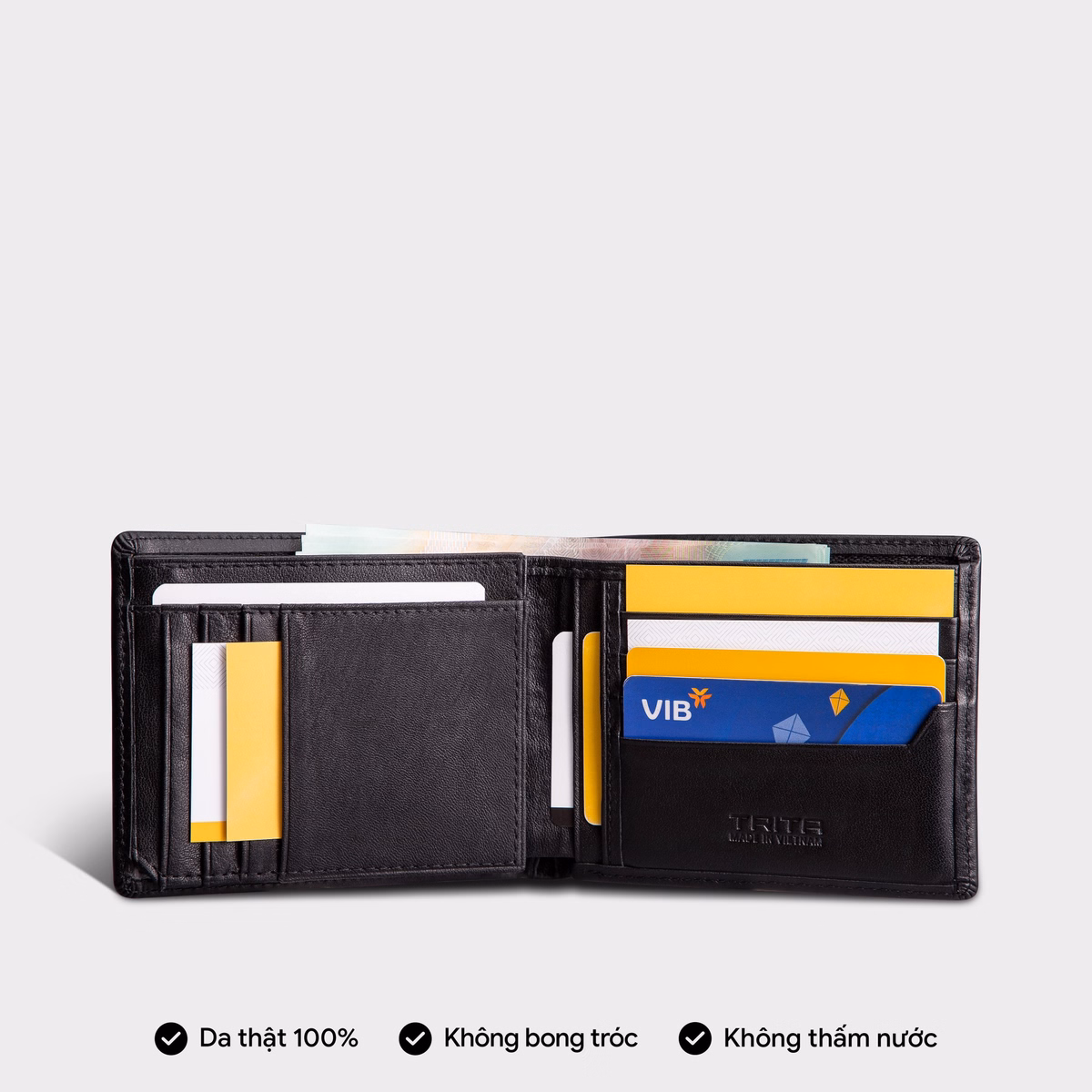 Ví nam da Trita Rvn05 được thiết kế mang đến sự tiện lợi với nhiều ngăn đựng giấy tờ, thẻ và tiền mặt. Sản phẩm được sử dụng trên chất da nhập khẩu cao cấp cùng họa tiết bắt mắt, gam màu nam tính giúp bạn có thể dễ dàng lựa chọn tone màu phù hợp với phong cách bản thân.