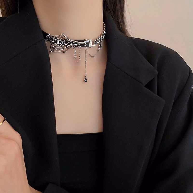 Vòng cổ chocker da spider web rock với chất liệu mặt dây Hợp kim chống gỉ silver kết hợp dây da Pu đen. Phối cùng những bộ quần áo mang hơi hướng cá tính phá cách. Phù hợp đi chơi đi làm, đi tiệc sang trọng độc đáo, phong cách cá tính,…