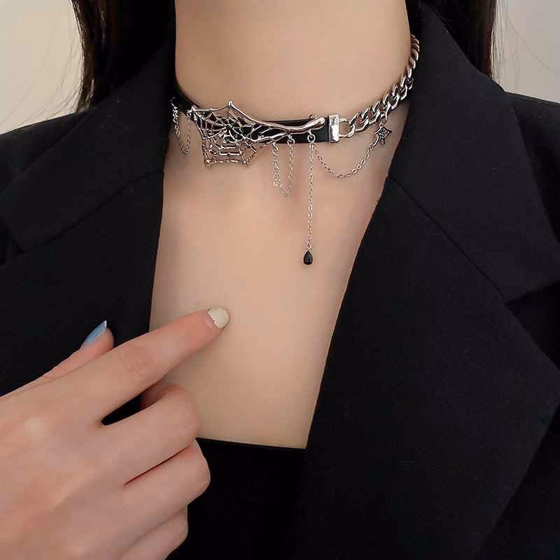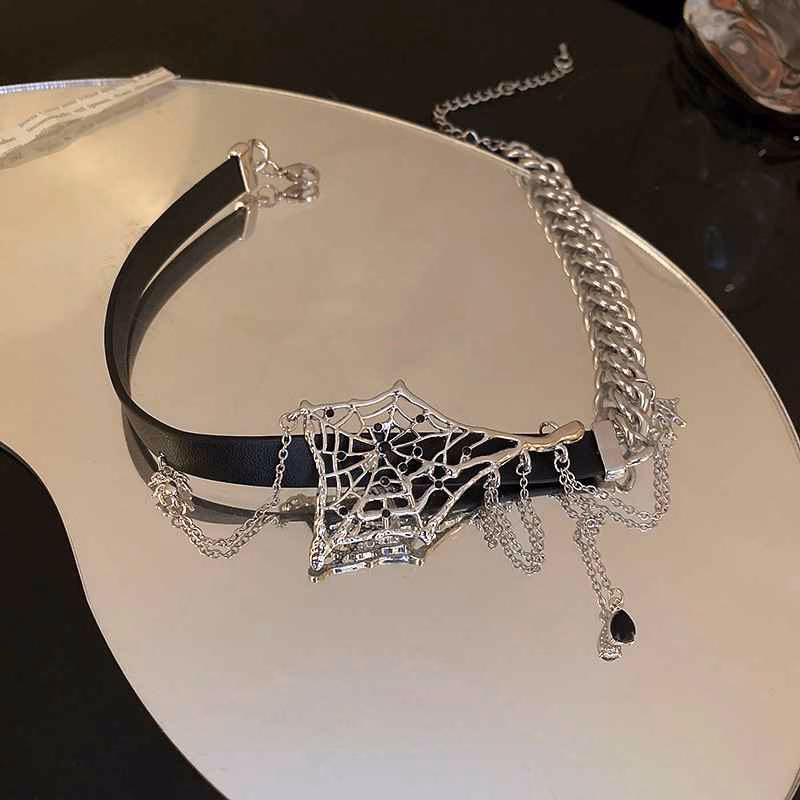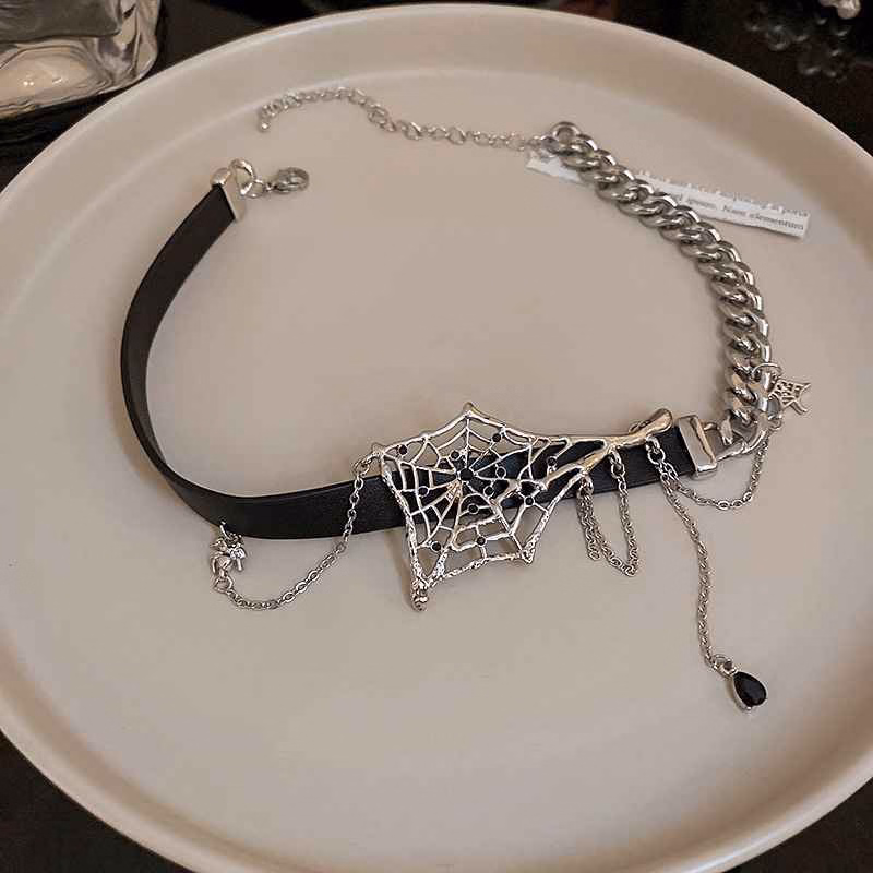 Vòng Cổ Choker Da Spider Web Rock – Mushroom Lee