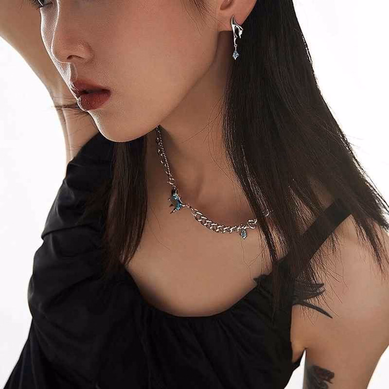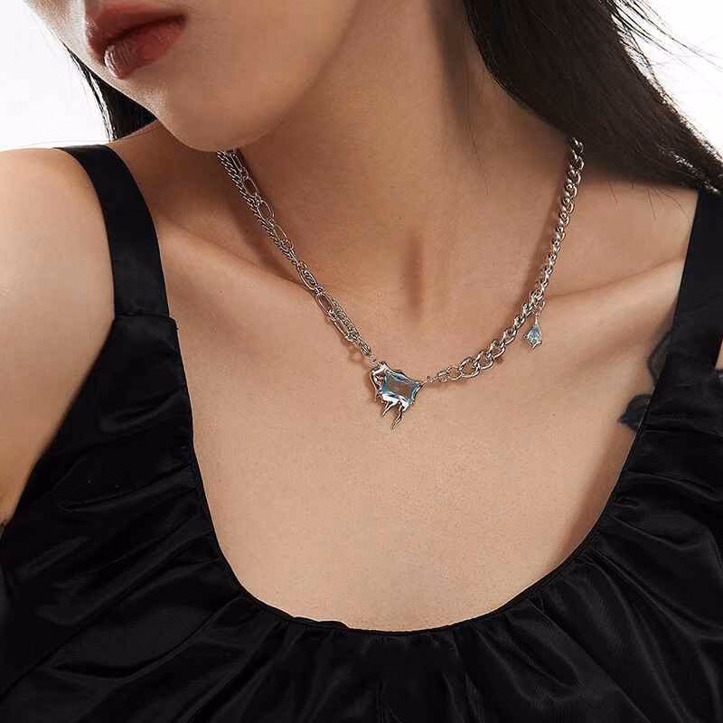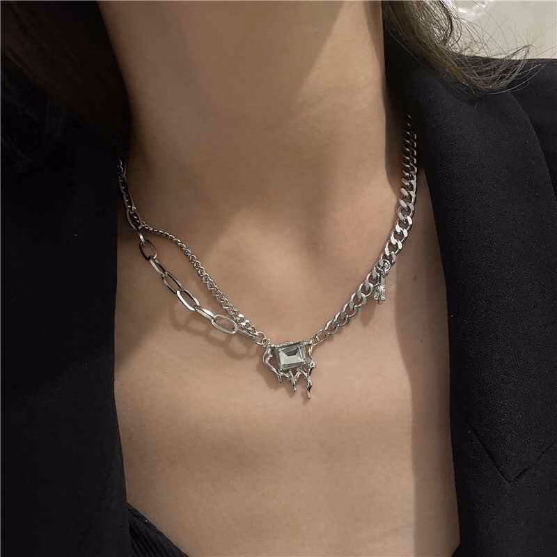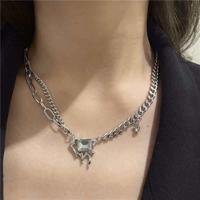 Vòng cổ mặt đá pha lê xanh với chất liệu Hợp kim chống gỉ silver. Phối cùng những bộ quần áo mang hơi hướng cá tính phá cách. Phù hợp đi chơi đi làm, đi tiệc sang trọng độc đáo, phong cách cá tính,…