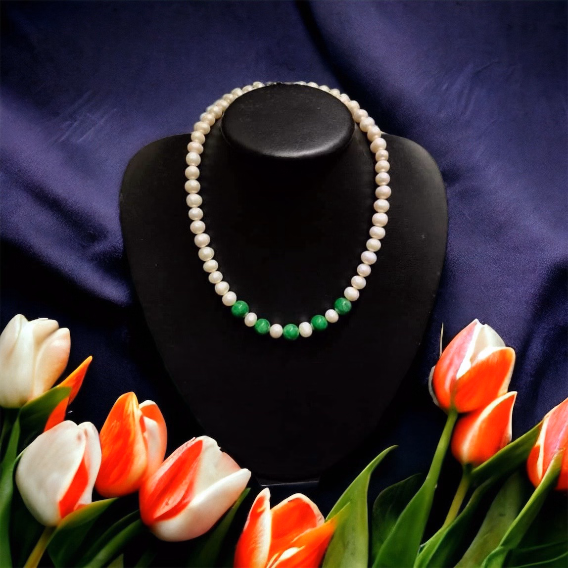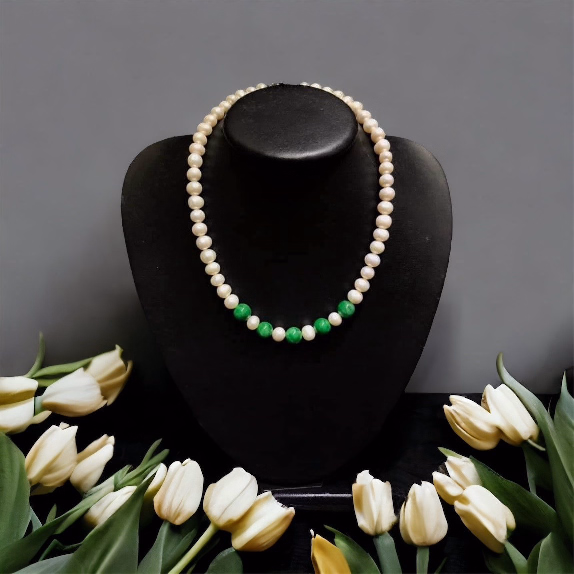 Vòng Cổ Ngọc Trai Nuôi Phối Hạt Ngọc Cẩm Thạch Thiên Nhiên – Thắng Giang