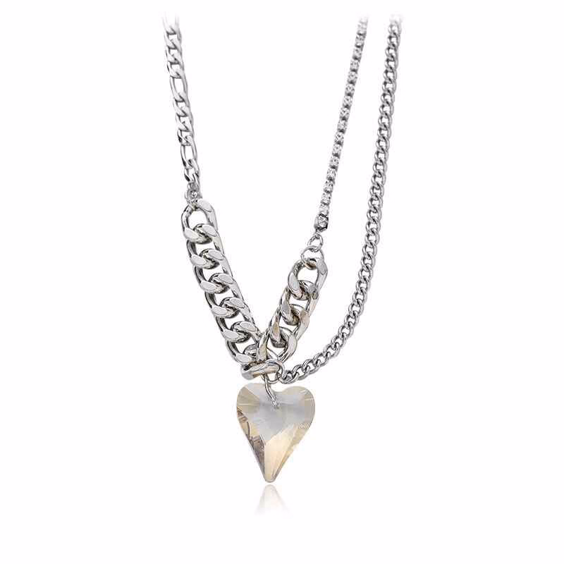 Chất liệu: Dây hợp kim chống gỉ silver, mặt dây trái tim pha lê