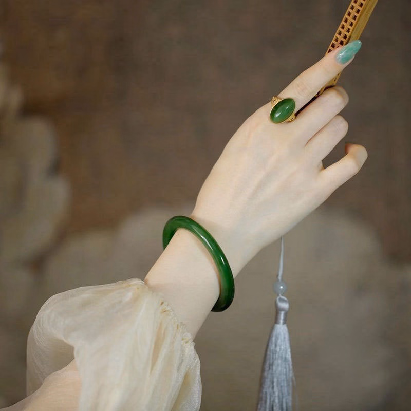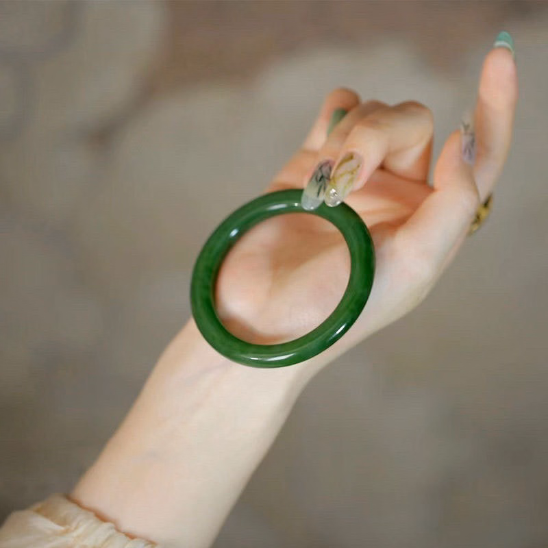 Vòng Tay Bản Khối Ngọc Bích Tân Cương 8 Ly – Thắng Giang