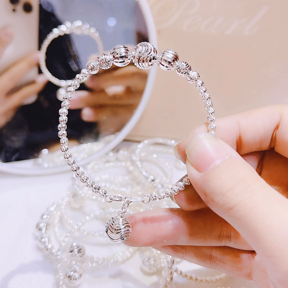 Một trong những món phụ kiện không thể thiếu đối với phái nữ đó chính là trang sức. Là con gái ai cũng muốn mình luôn xinh đẹp và có sức hút trong mắt người đối diện. Bvòng tay bi phay bạc ta , bạc ta xi vàng – thắng giang với kiểu dáng thanh lịch, trẻ trung, sang trọng và quyến rũ phù hợp bạn gái yêu thích thời trang. Có thể kết hợp với nhiều loại trang phục, phụ kiện đi kèm tôn nét đẹp tinh tế của phái đẹp.