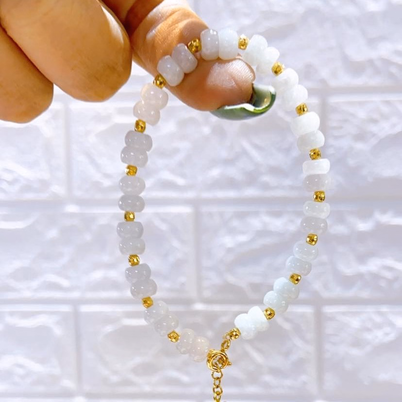 Tên sản phẩm: vòng tay cẩm thạch dẹt thiên nhiên phối bạc xi vàng – thăng giang