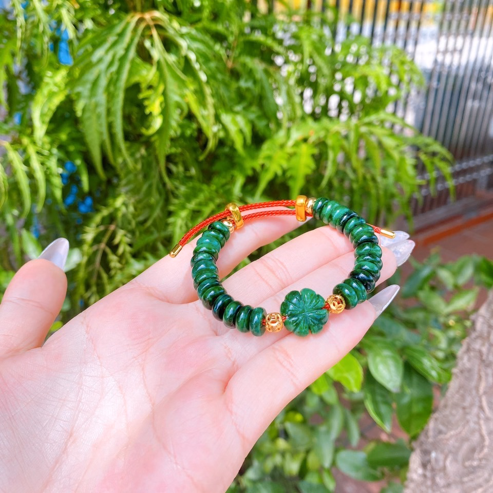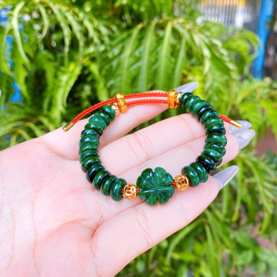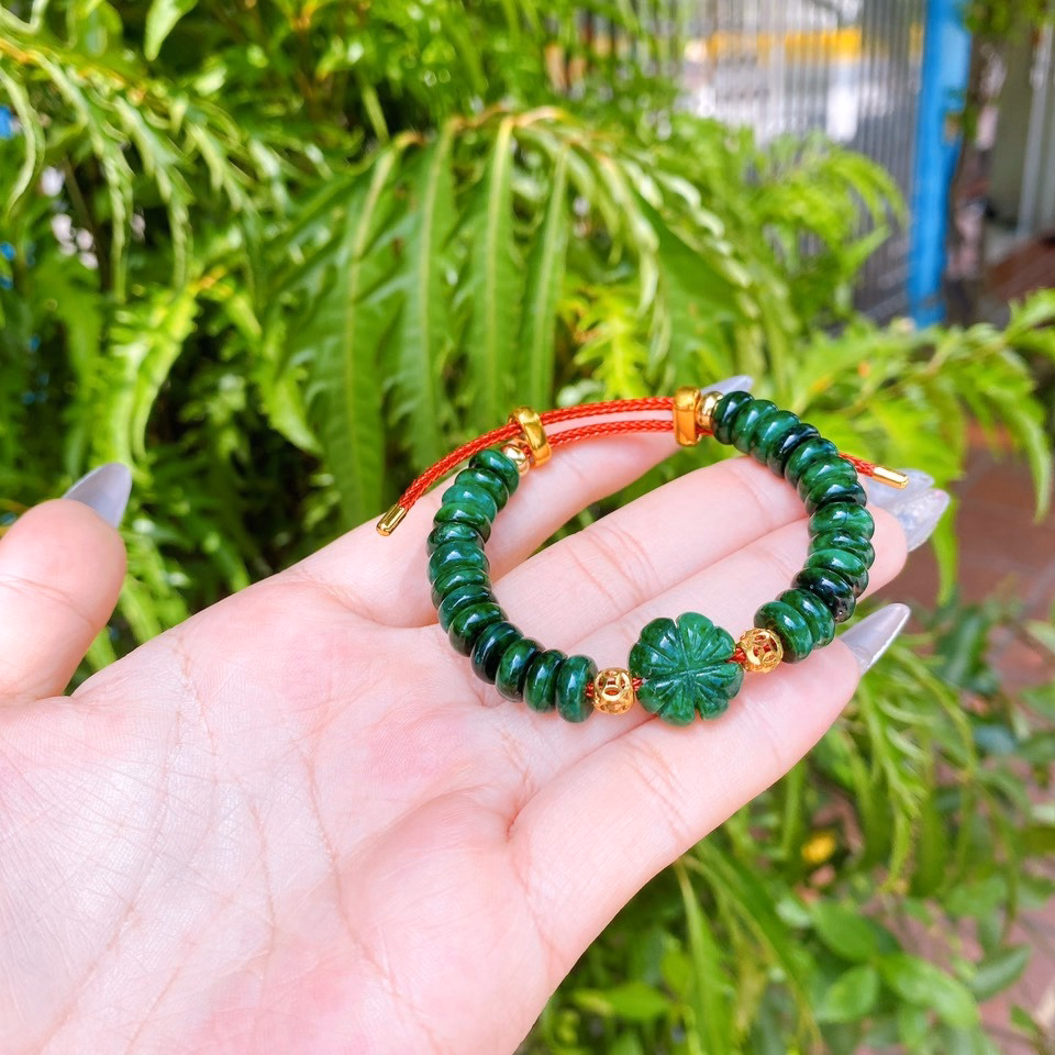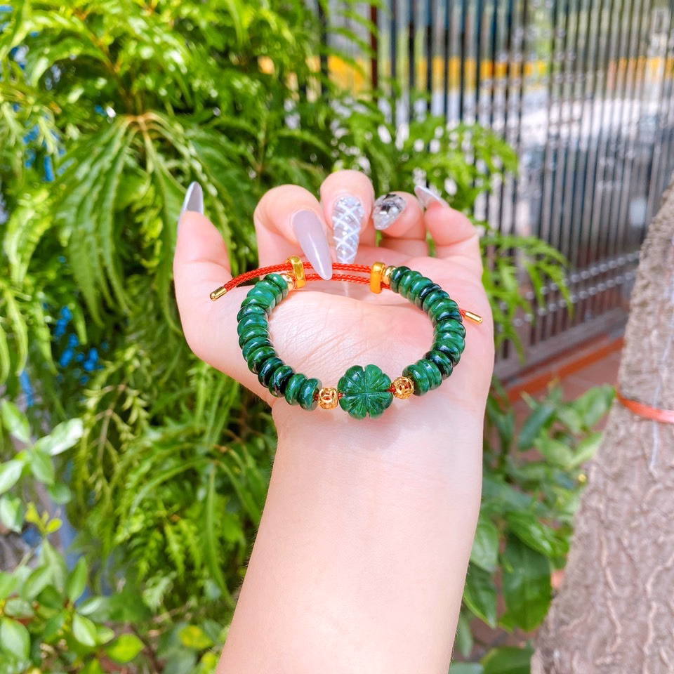 Vòng Tay Cỏ Bốn Lá Ngọc Cẩm Thạch Sơn Thủy Thiên Nhiên Bi Kim Tiền Vàng Tây 10 Kara – Thắng Giang