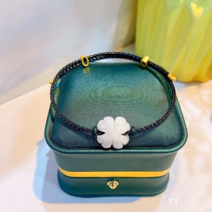 Vòng Tay Cỏ Bốn Lá Ngọc Cẩm Thạch Trắng Thiên Nhiên Dây Cáp – Thắng Giang