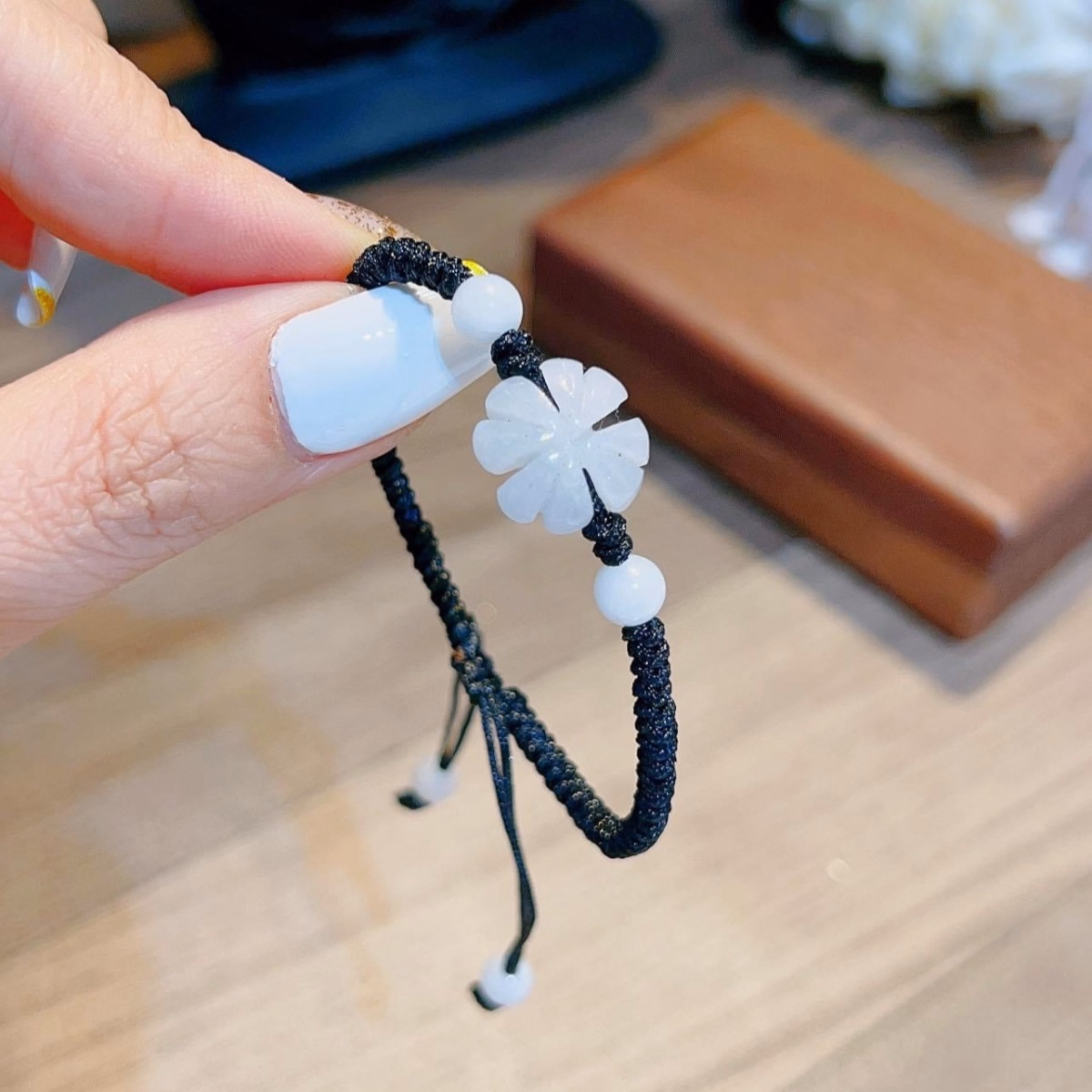 tên sản phẩm ;vòng tay cỏ bốn lá ngọc cẩm thạch trắng thiên nhiên tết chỉ may mắn – freesize – thắng giang