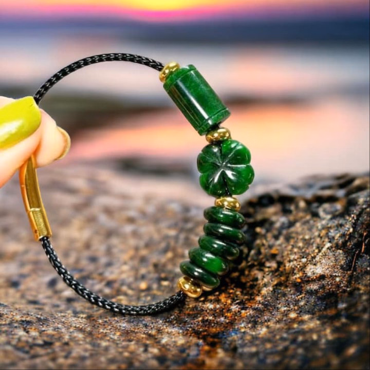 Vòng Tay Cỏ Bốn Lá Ngũ Điếu Lu Thống Ngọc Cẩm Thạch Thiên Nhiên – Thắng Giang