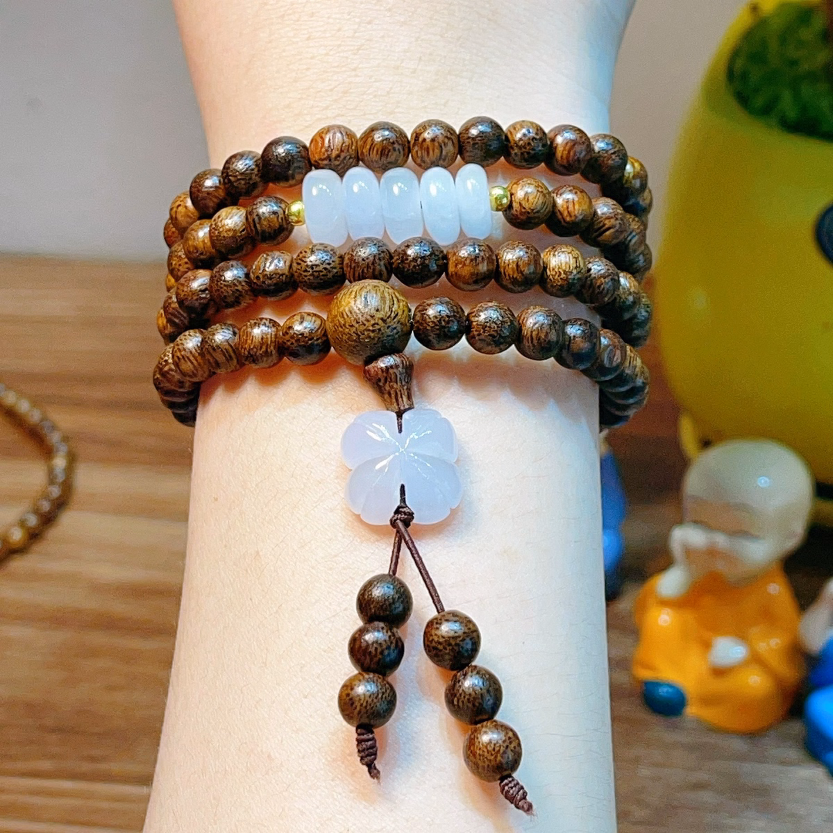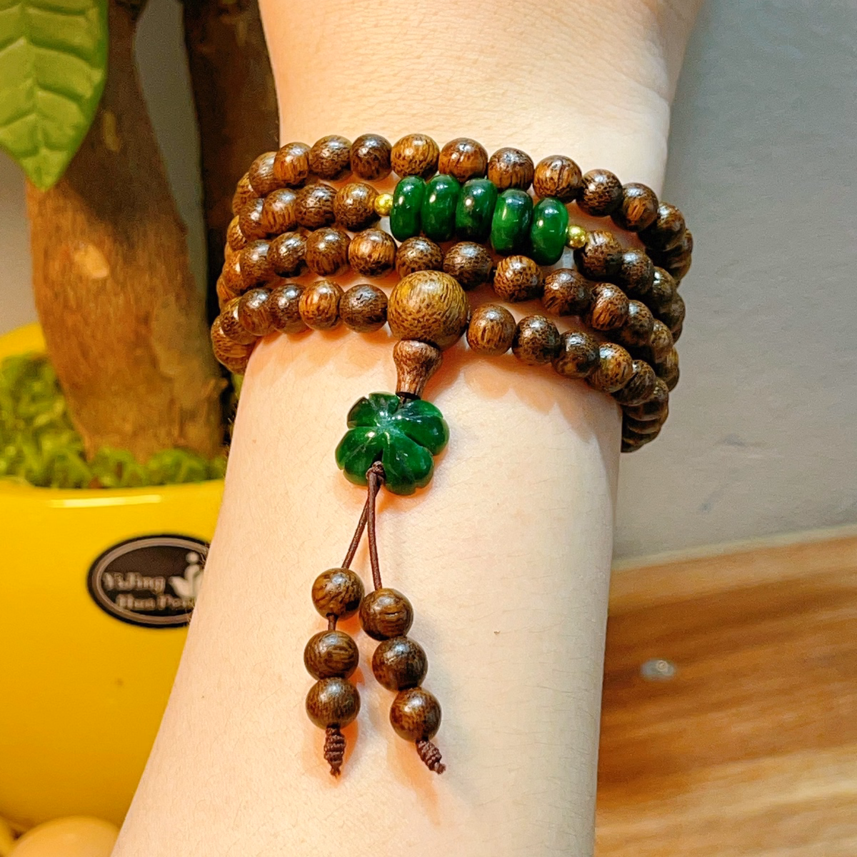 Vòng Tay Cỏ Bốn Lá Ngũ Điếu Ngọc Cẩm Thạch Thiên Nhiên Phối Trầm Hương – Thắng Giang