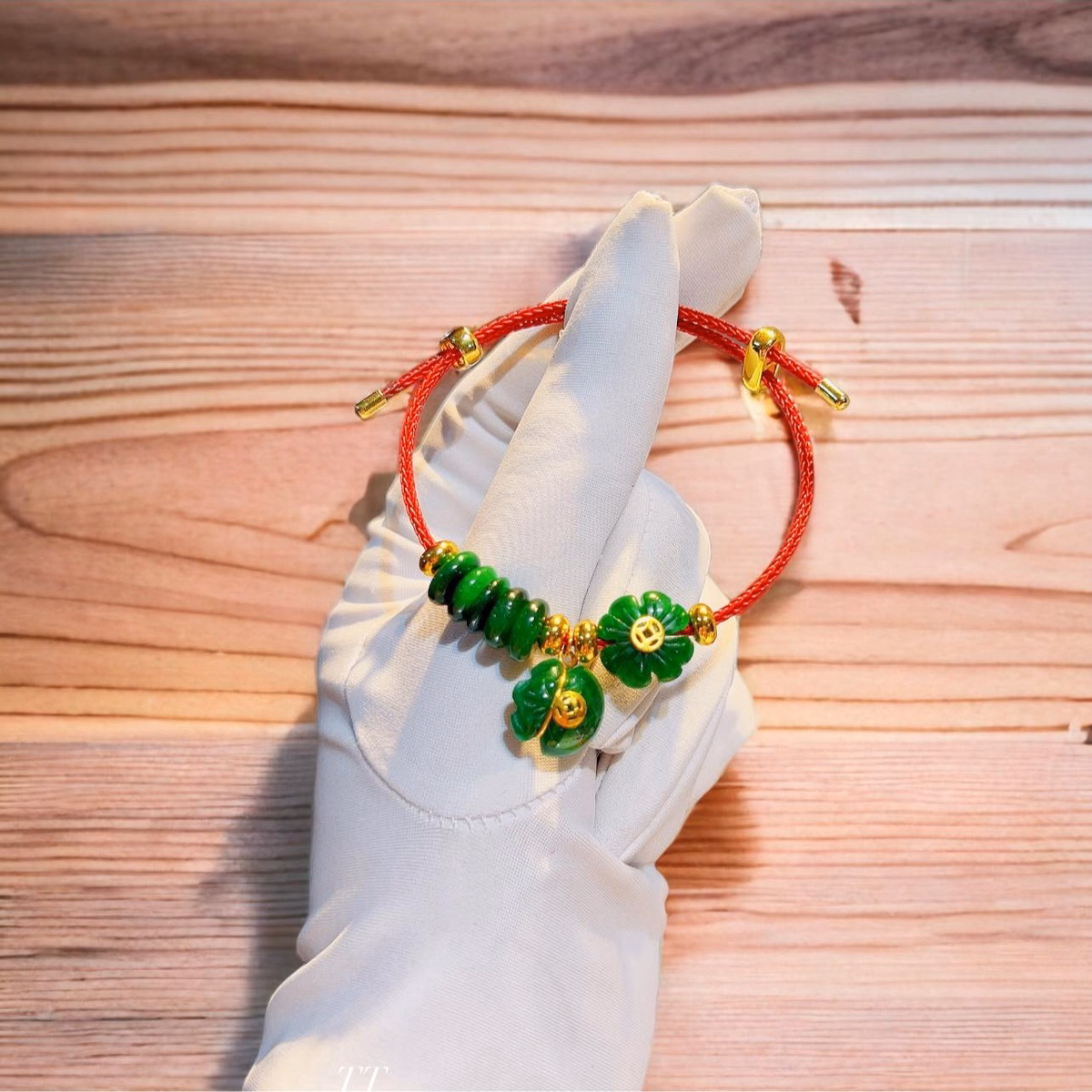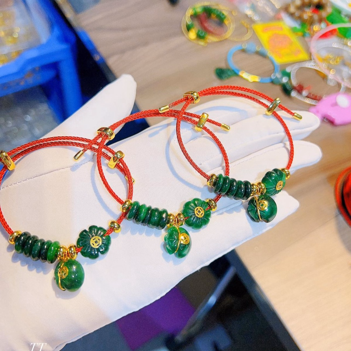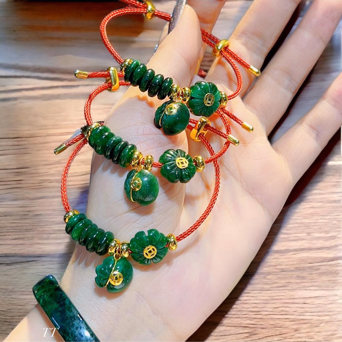 Vòng Tay Cỏ Bốn Lá Ngũ Điếu Túi Tiền Cẩm Thạch Sơn Thủy Phối Charm Vàng – Thắng Giang