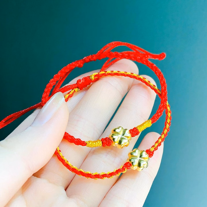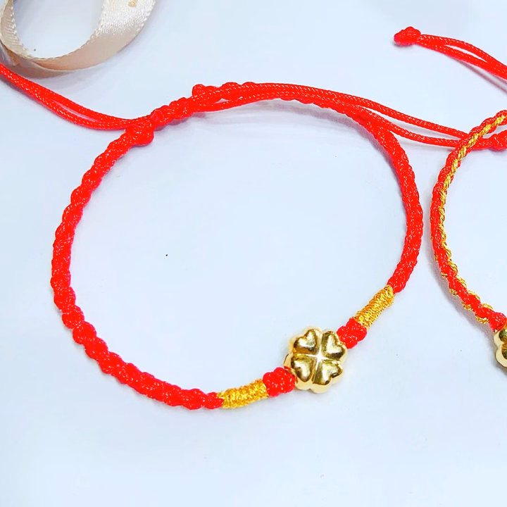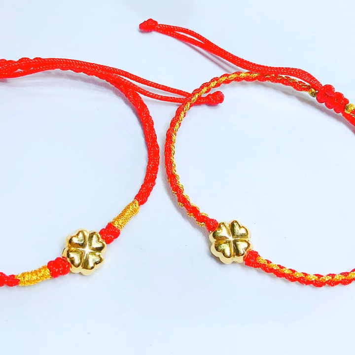 Vòng Tay Cỏ Bốn Lá Vàng Tây 10 Kara Tết Chỉ Đỏ May Mắn – Thắng Giang