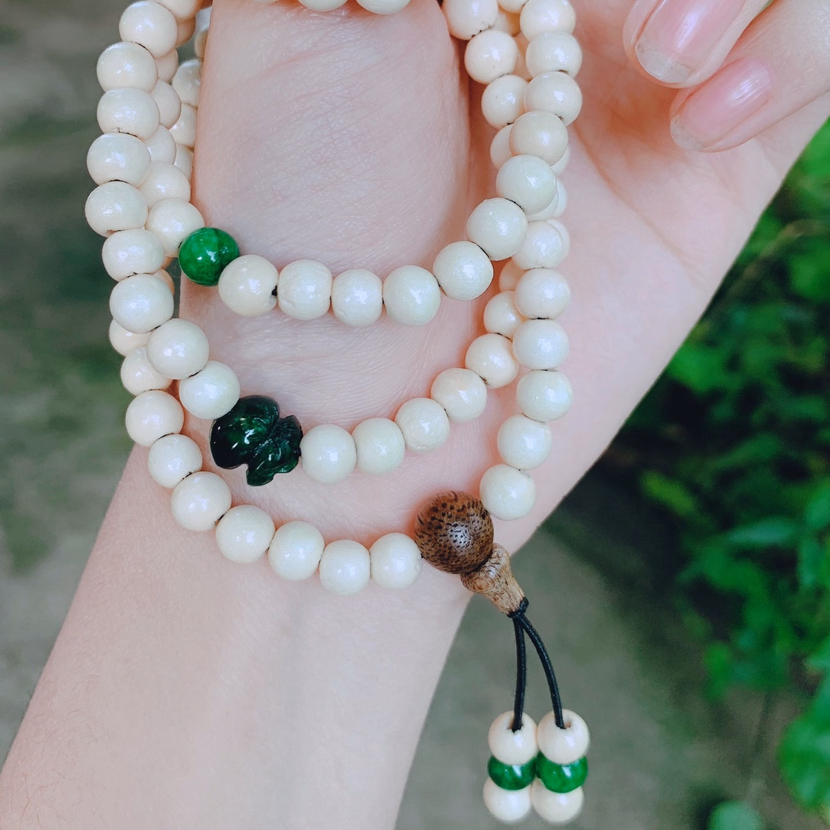 Vòng Tay Dâu Tằm Phối Túi Tiền Ngọc Cẩm Thạch Sơn Thủy Thiên Nhiên 108 Hạt – Thắng Giang