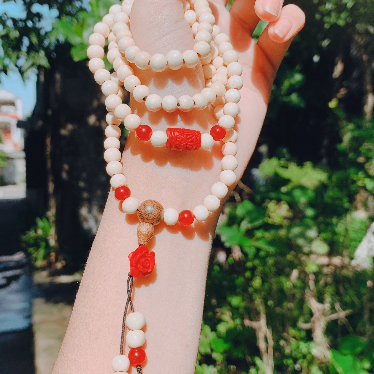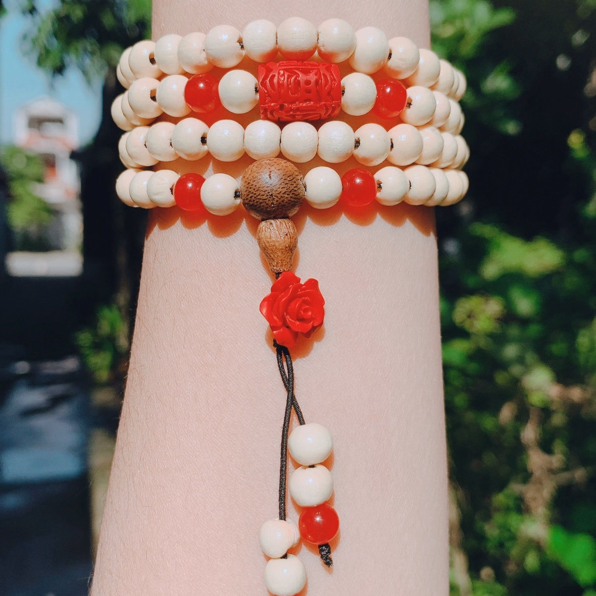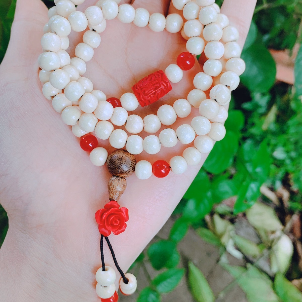 Vòng Tay Dâu Tằm Thiên Nhiên Phối Lu Thống Hoa Mẫu Đơn Chu Sa – Thắng Giang