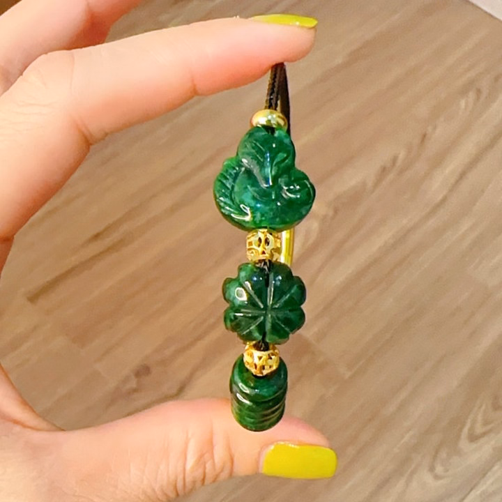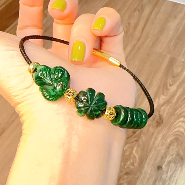 Vòng Tay Hồ Ly Cỏ Bốn Lá Ngũ Điếu Cẩm Thạch Sơn Thủy Bi Vàng Tây 10 Kara – Thắng Giang