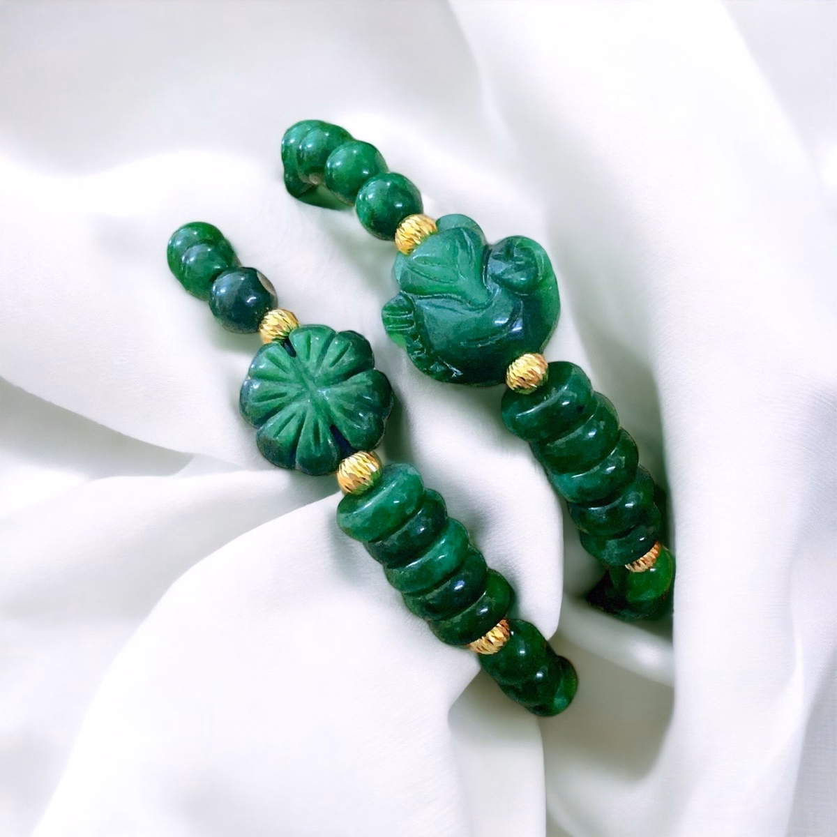 Vòng Tay Hồ Ly , Cỏ Bốn Lá Ngũ Điếu Đá Ngọc Cẩm Thạch Thiên Nhiên 8 Ly – Thắng Giang