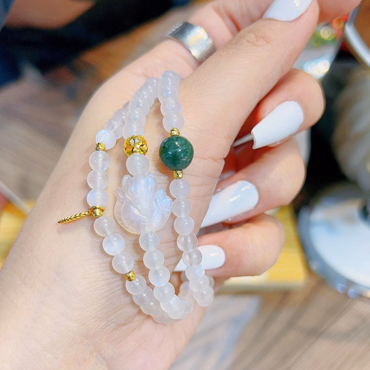 Đá mặt trăng đã làm say đắm trái tim của những người yêu trang sức trong nhiều thế kỷ. Với vẻ đẹp dịu dàng từ các vệt ánh sáng xanh mát chuyển động bắt mắt, đá moonstone luôn thu hút mọi ánh nhìn cho dùng bạn sử dụng đá mặt trăng để làm bất kỳ trang sức nào từ vòng đá mặt trăng, nhẫn đá mặt trăng, cho đến mặt dây chuyền.
