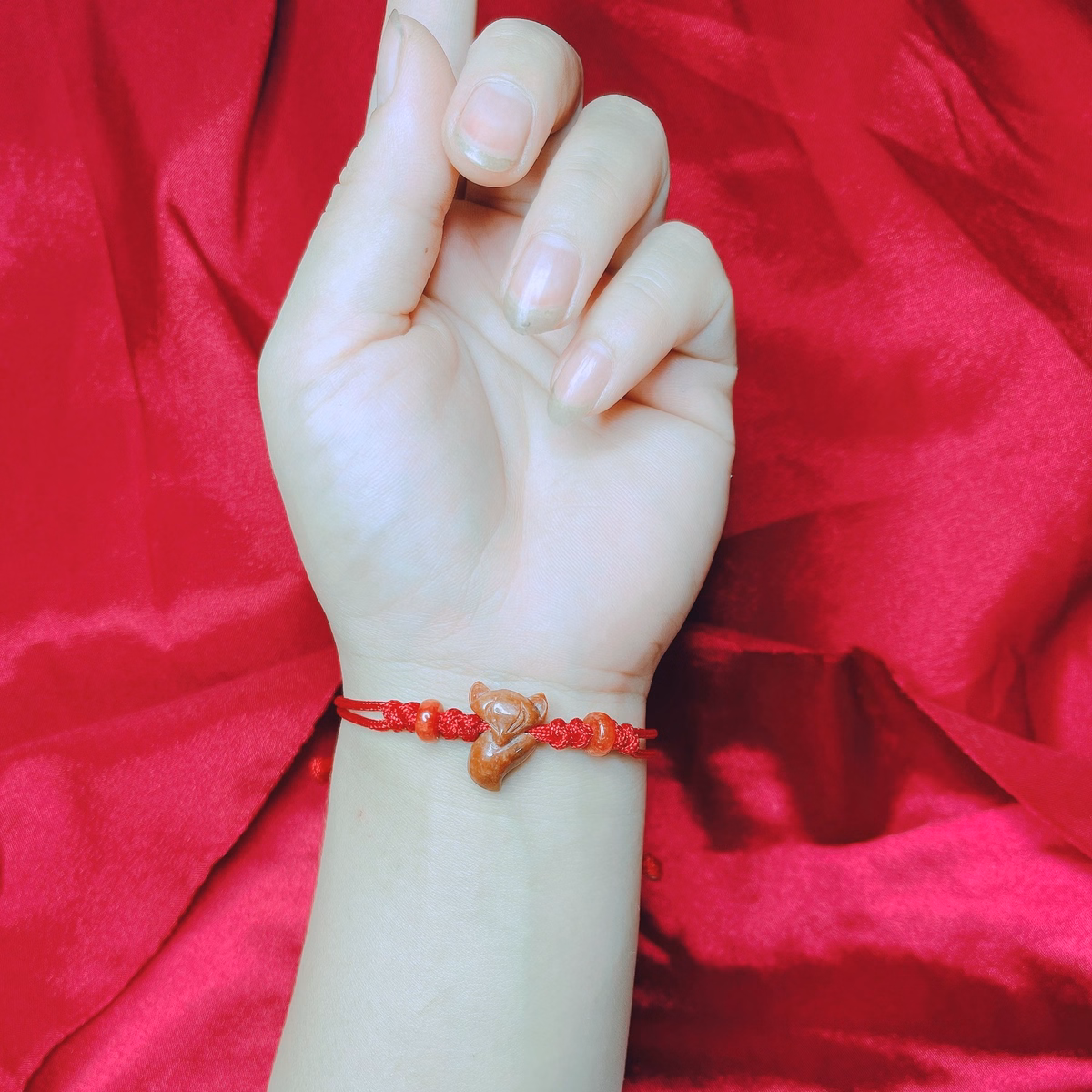 Tên sản phẩm: vòng tay hồ ly ngọc cẩm thạch huyết tết dây song điếu – thắng giang