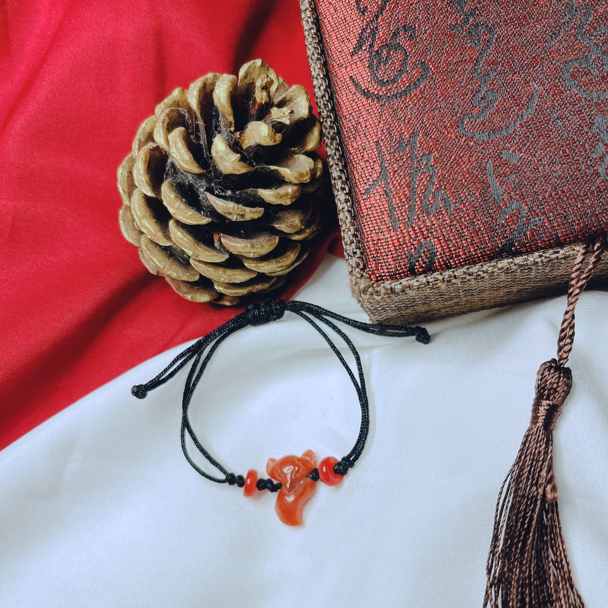 Hãy là người đầu tiên nhận xét “Vòng Tay Hồ Ly Ngọc Cẩm Thạch Huyết Tết Dây Song Điếu – Thắng Giang”