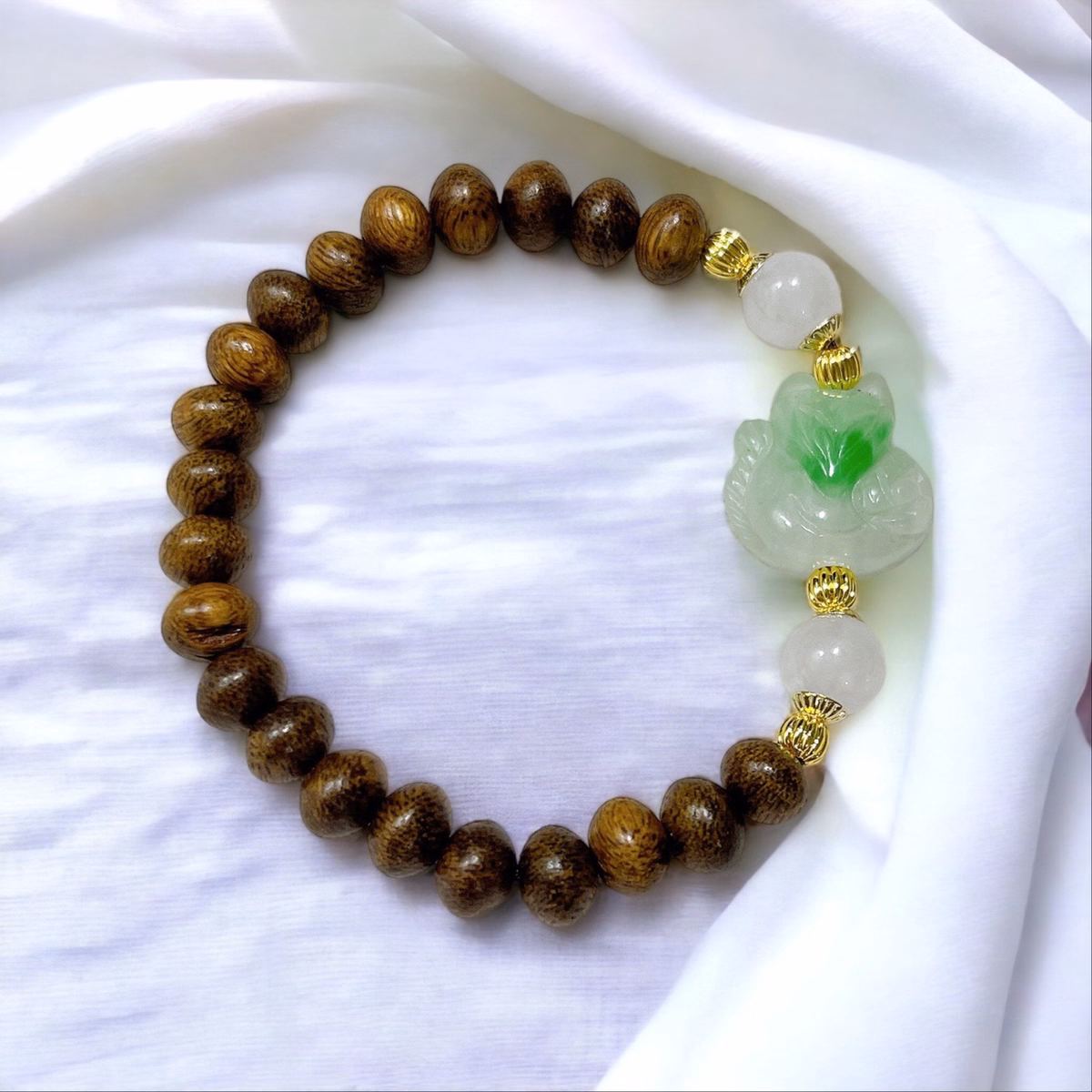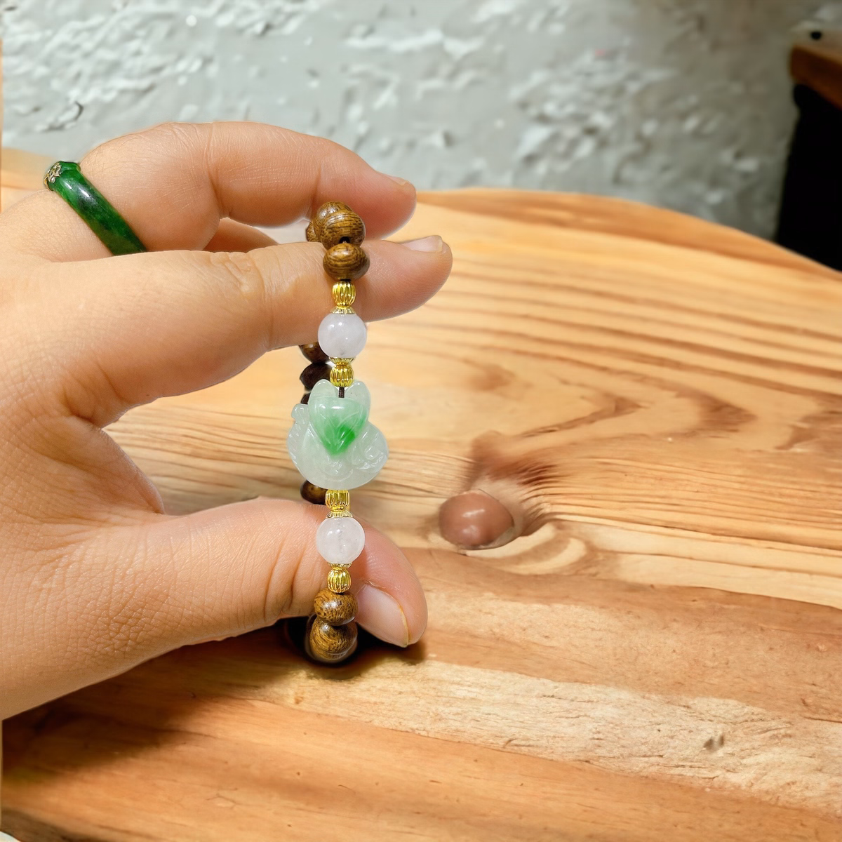 Vòng Tay Hồ Ly Ngọc Cẩm Thạch Lý Vân Thiên Nhiên Phối Trầm Hương Tốc Hạt Dẹt – Thắng Giang