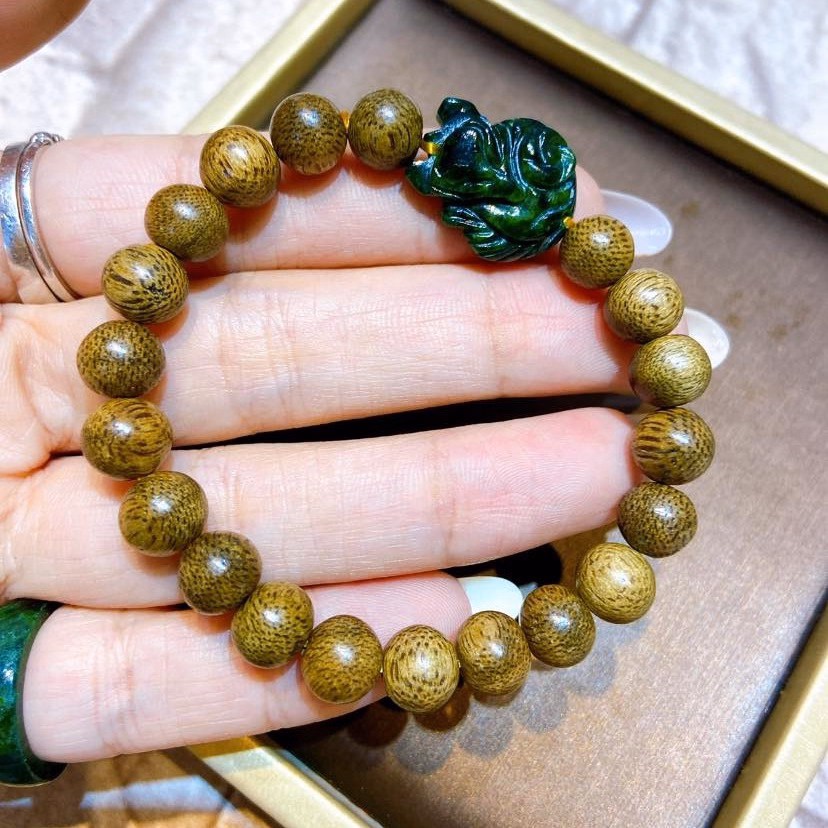 Vòng Tay Hồ Ly Ngọc Cẩm Thạch Sơn Thủy Phối Trầm Hương Tốc 8 Ly – Thắng Giang