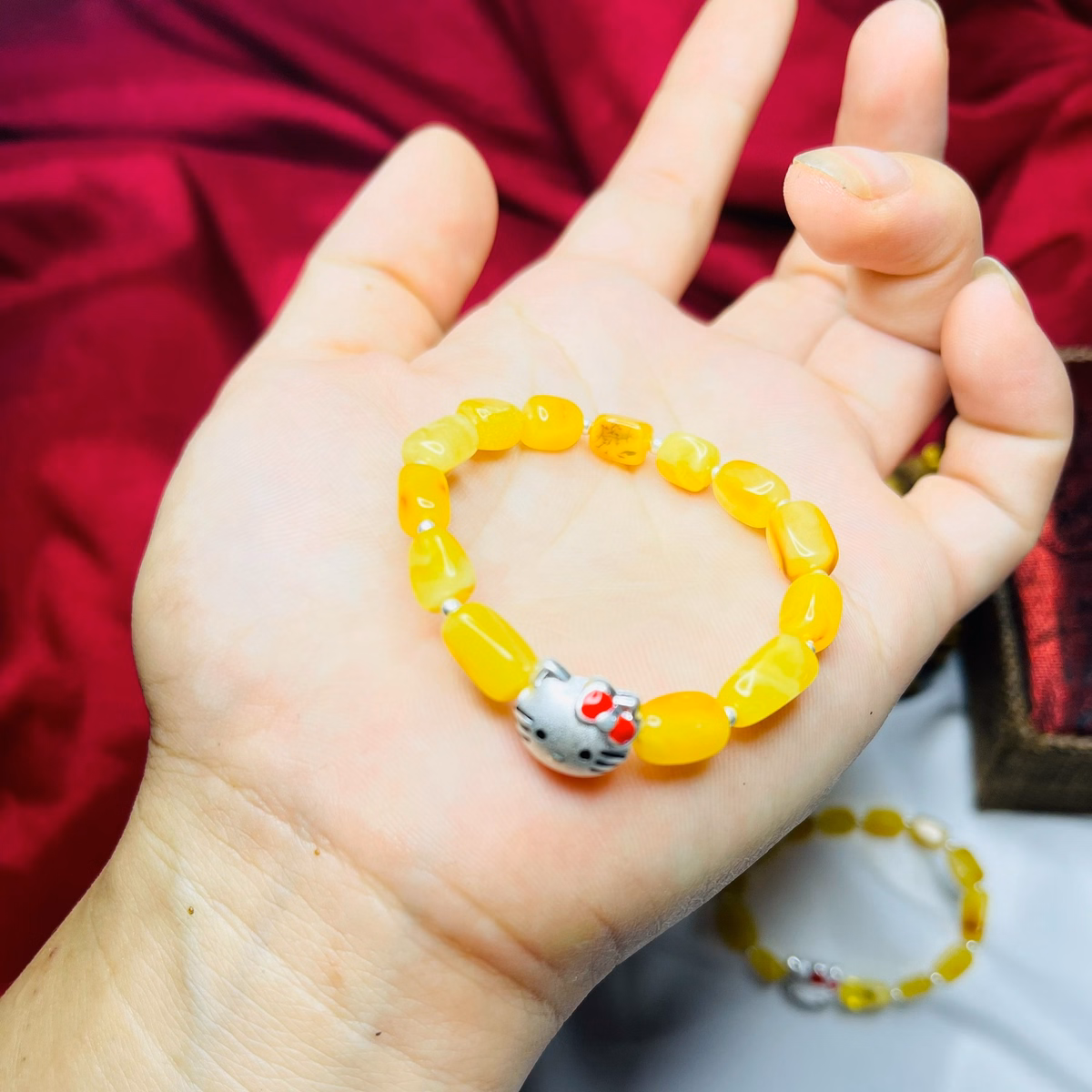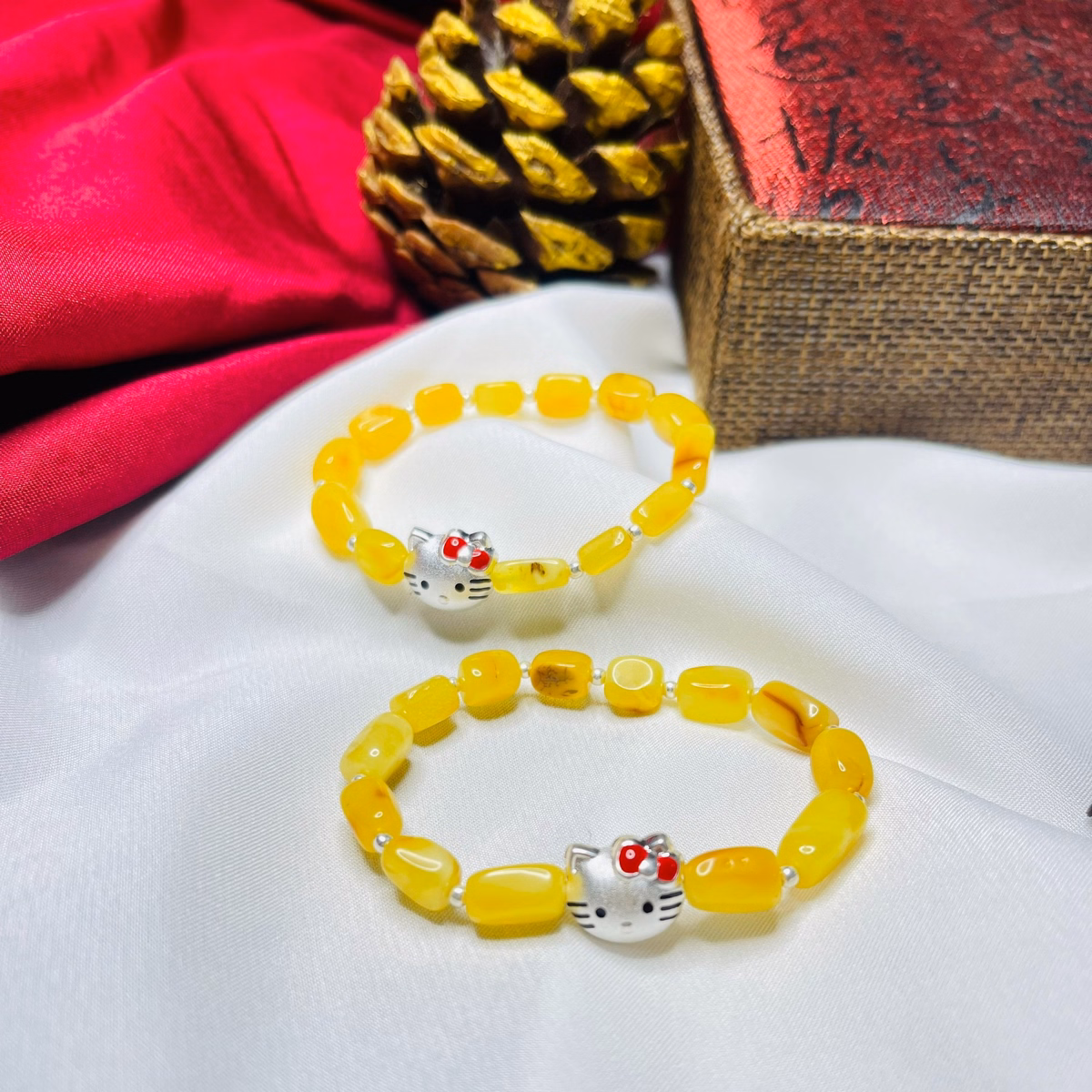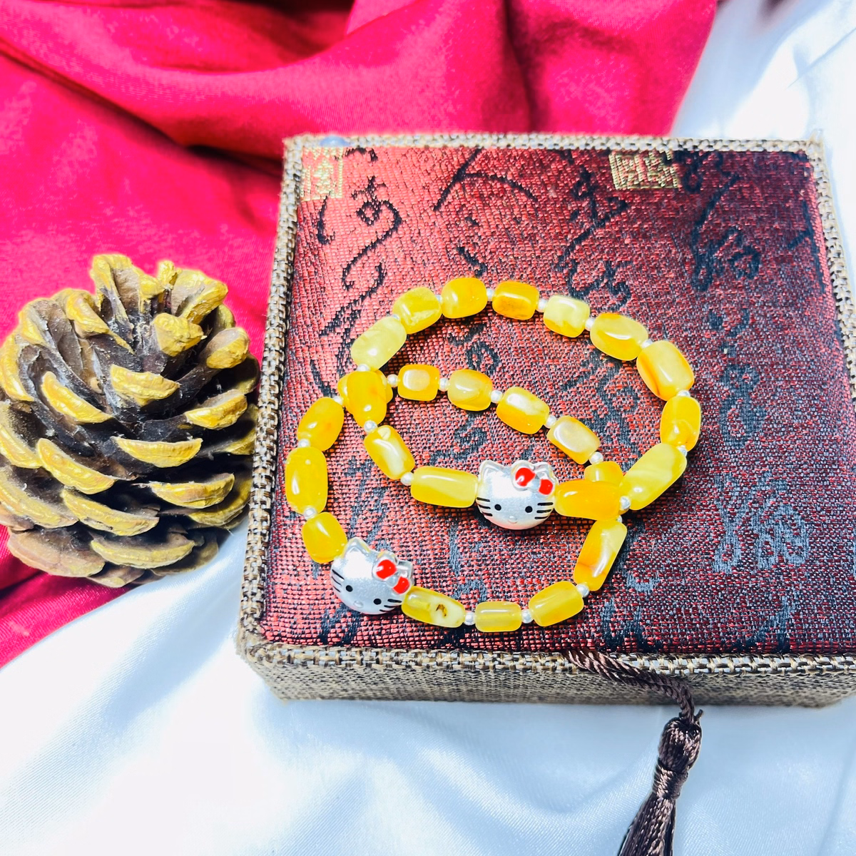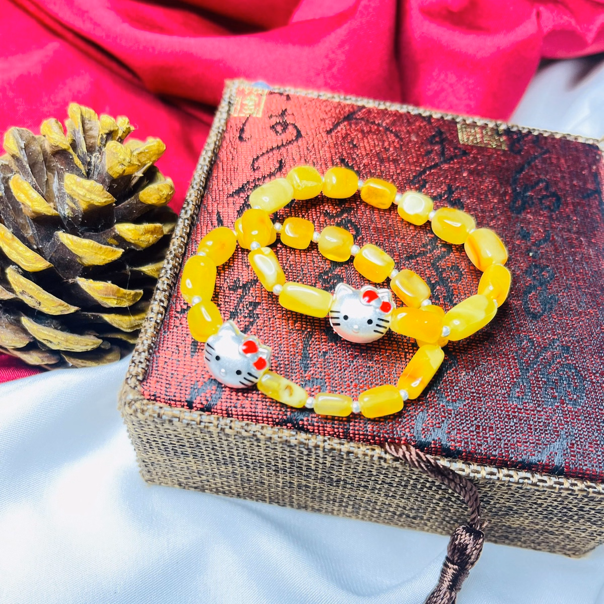 Vòng Tay Hổ Phách Hạt Gạo Thiên Nhiên Phối Charm Mèo Bạc Ta – Thắng Giang