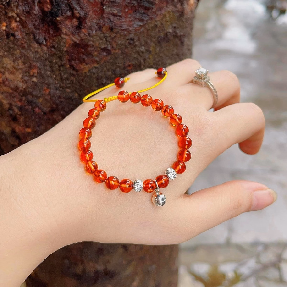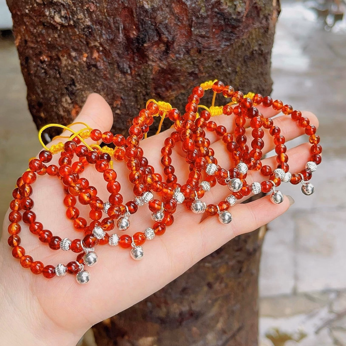 Vòng Tay Hổ Phách Huyết Thiên Nhiên Phối Chuông Bạc Ta – Thắng Giang
