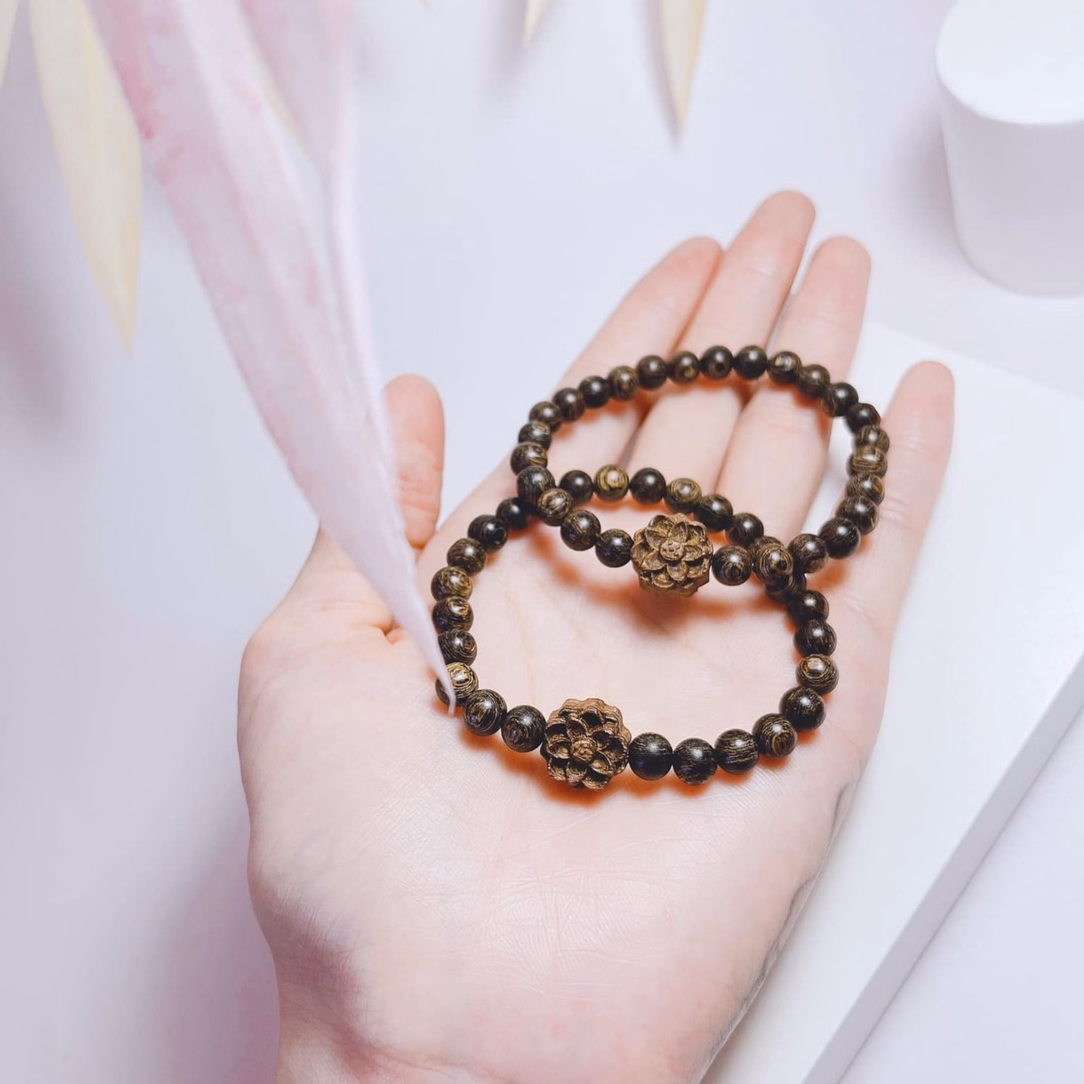 Tên sản phẩm: vòng tay hoa sen trầm hương sánh chìm thiên nhiên 6 ly – thắng giang