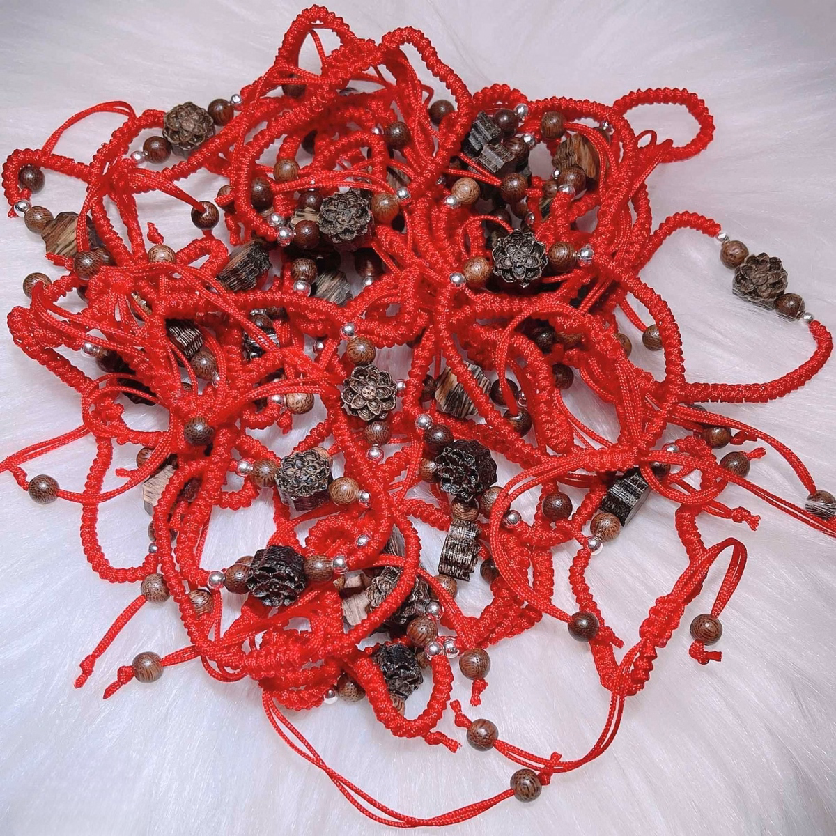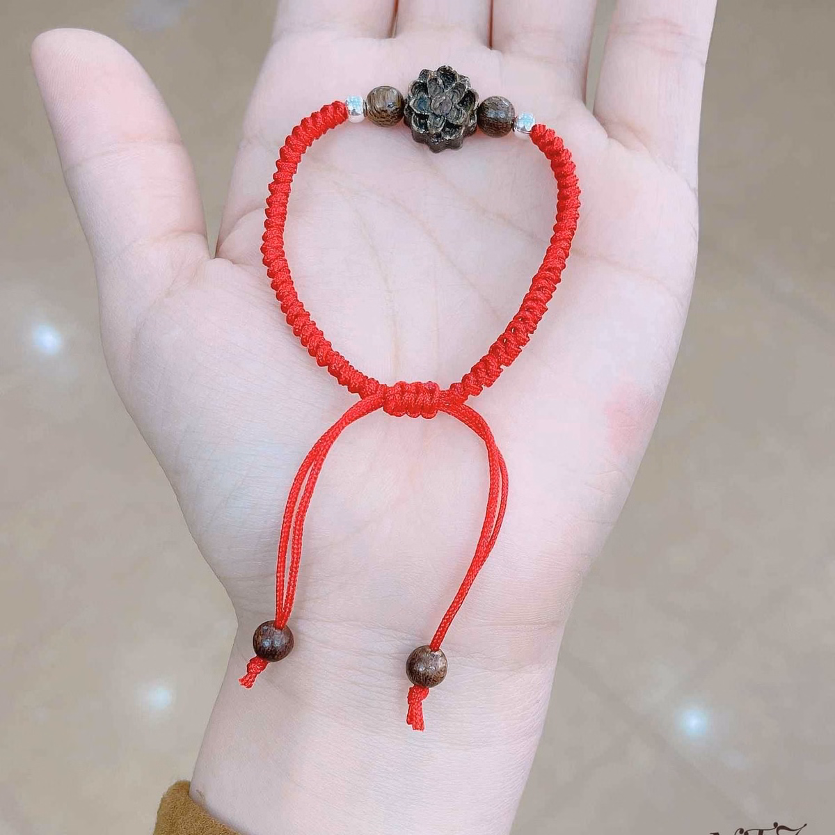 Vòng Tay Hoa Sen Trầm Hương Sánh Tết Chỉ Đỏ May Mắn – Thắng Giang