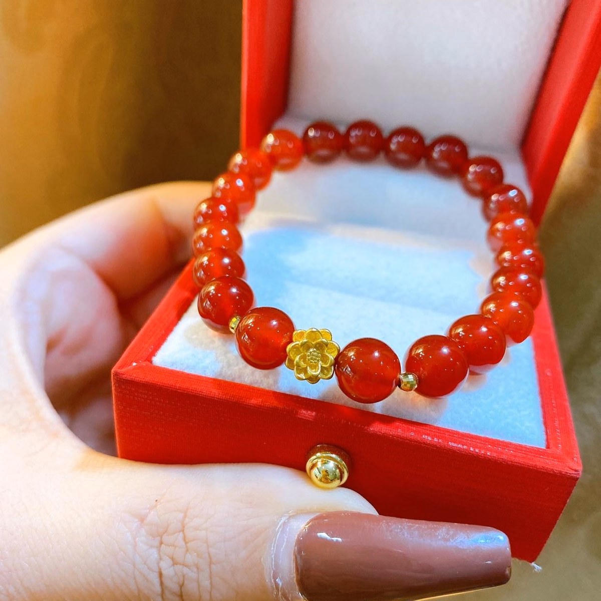 Vòng Tay Mã Não Đỏ Phối Charm Sen Bạc Ta Xi Vàng 24Kara – Thắng Giang