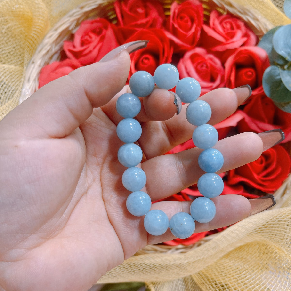 Vòng Tay Nam Thạch Anh Màu Aquamarine 12 Ly – Thắng Giang