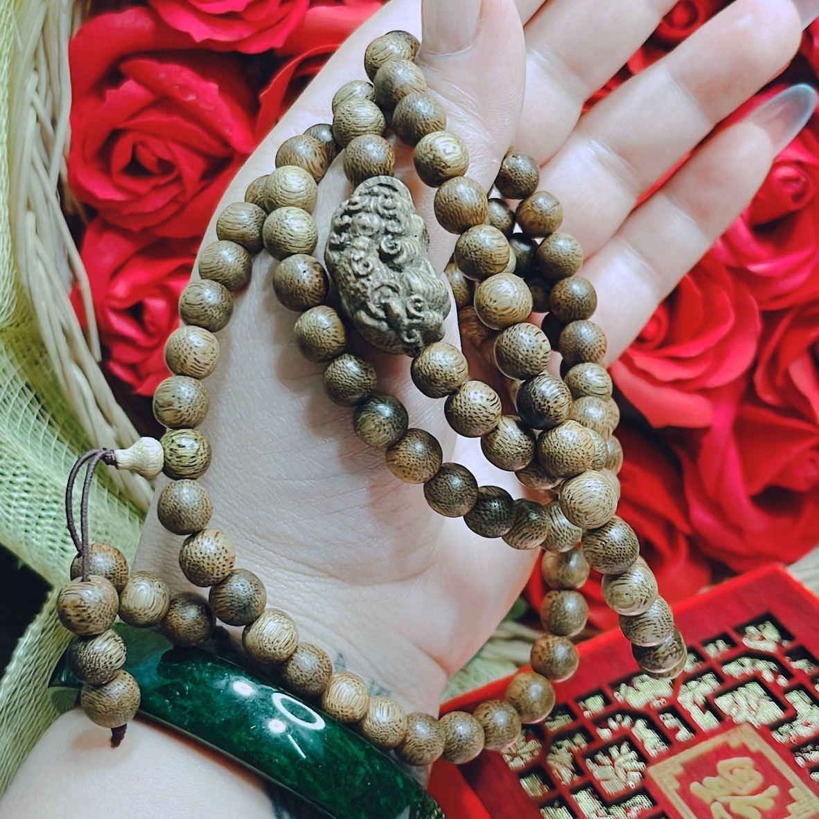Chuỗi hạt 108 là pháp khí tu hành, chứa đựng công đức giúp sinh tài khí, cải thiện phong thủy. Đây là một sản phẩm phong thủy mà bạn có thể dùng làm quà tặng cho người thân bạn bè để gửi gắm nhưng mong muốn an bình, tài lộc, may mắn và trường thọ tới họ. Bên cạnh đó, chuỗi hạt Trầm hương 108 hạt còn giúp xua tan các mùi khó chịu xung quanh, thanh lọc môi trường mà bạn đang sống.