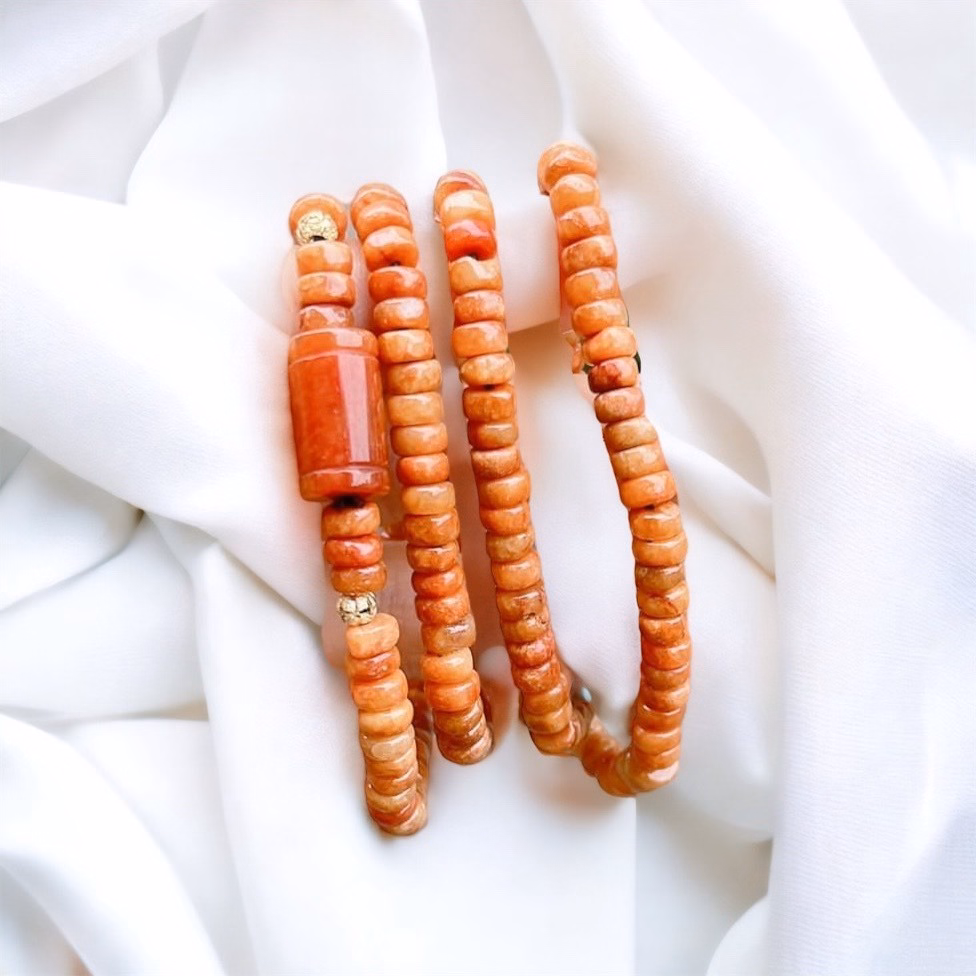 Tên sản phẩm: vòng tay ngọc cẩm thạch huyết thiên nhiên hạt dẹt phối lu thống – thắng giang