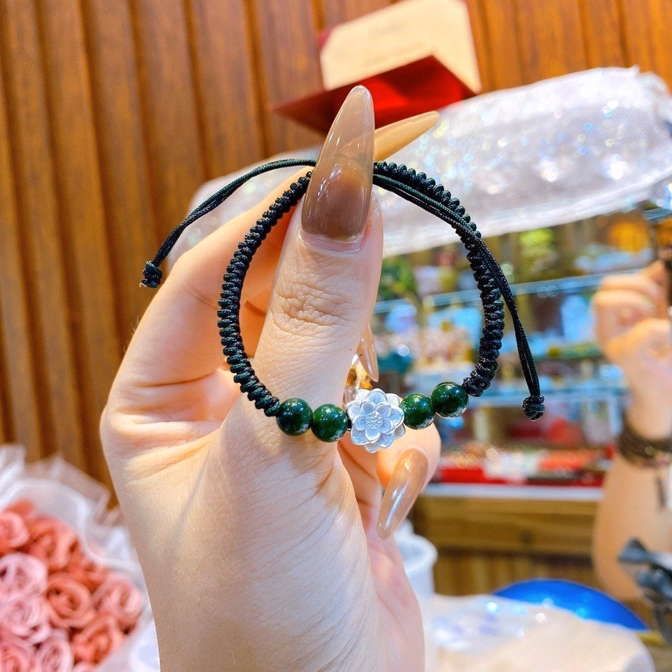 Tên sản phẩm: vòng tay sen bạc ta tết đá cẩm thạch thiên nhiên – thắng giang