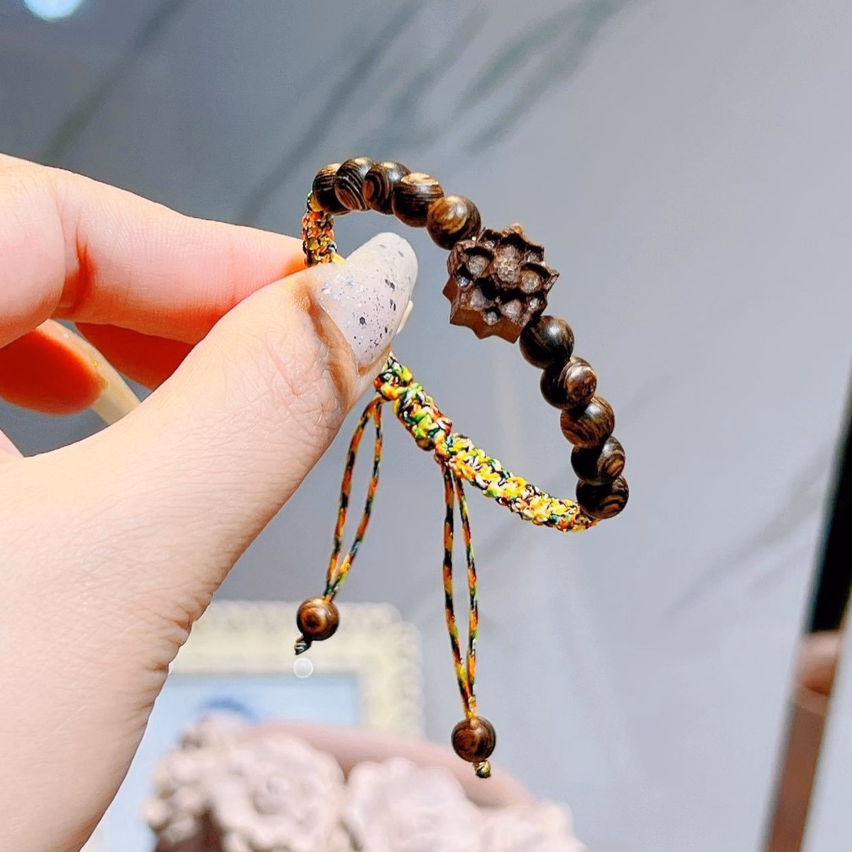 Tên sản phẩm: vòng tay sen trầm hương sánh chìm thiên nhiên tết chỉ ngũ sắc – thắng giang