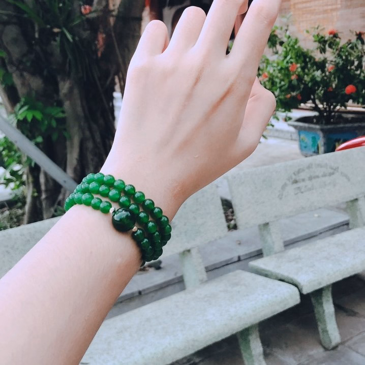 Vòng Tay Thạch Anh Màu Ngọc Bích Quấn Ba 6 Ly – Thắng Giang