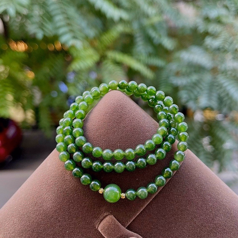 Tên sản phẩm: Vòng Tay Thạch Anh Màu Ngọc Bích Quấn Ba 6 Ly – Thắng Giang