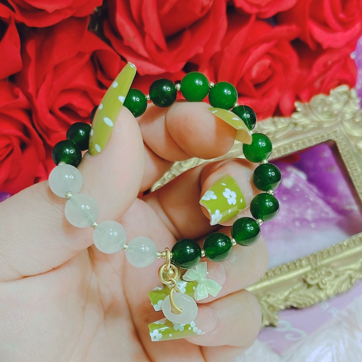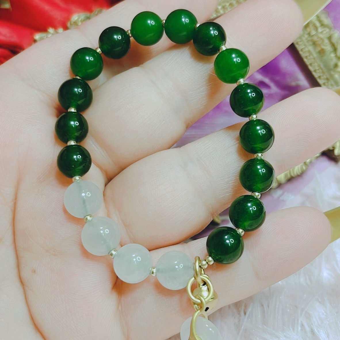 [Dây] Vòng Tay Đá Ngọc Bích Mix Charm – Ttvtdnb