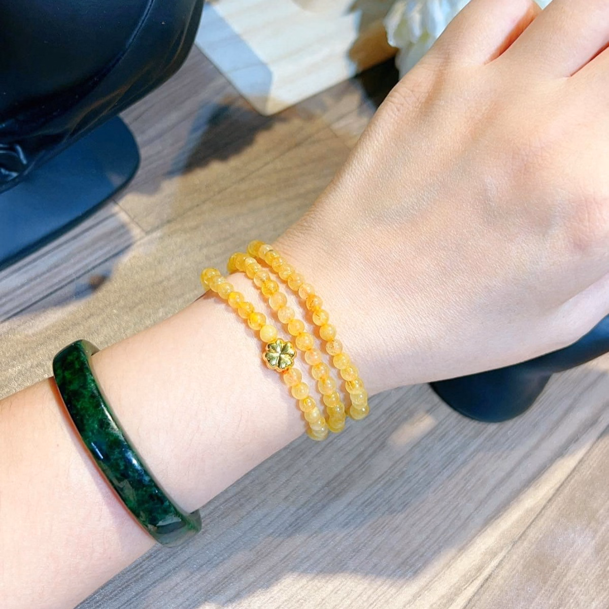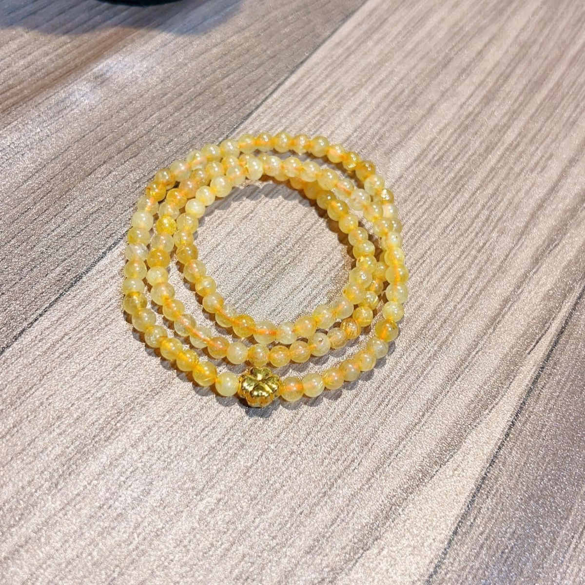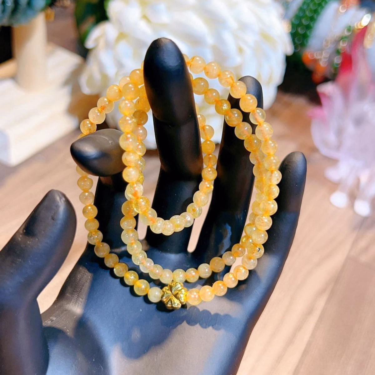 Vòng Tay Thạch Anh Tóc Vàng Thiên Nhiên Phối Charm Cỏ Bốn Lá Vàng Tây 10 Kara – Thắng Giang