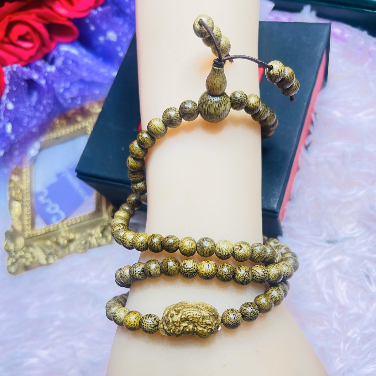 Trên đời này có 1 thứ mà bạn không nên bỏ lỡ. Là chuỗi vòng Trầm đã được trì chú. Đặc tính tốt của Trầm mà ai cũng đã biết “Người xưa quan niệm rằng trầm là nơi tụ linh khí của trời đất, vượng khí trên thế gian, hấp thu tài lộc. Ngoài ra trầm chứa một lượng tinh dầu rất lớn, có khả năng tránh gió, bảo vệ sức khoẻ người dùng, thư giãn đầu óc, mang lại tinh thần thoải mái”. Chuỗi Trầm Hương 108 – Thời Trang Phong Thủy – An Nhiên Ý Nghĩa Chuỗi hạt 108 là biểu thị cho cầu chứng 108 Pháp Tam Muội. Đoạn trừ 108 loại phiền não trên đời, tạo sự bình yên trong tâm hồn, không còn bị xáo trộn bởi thị phi. Chuỗi hạt 108 là pháp khí tu hành, chứa đựng công đức giúp sinh tài khí, cải thiện phong thủy. Đây là một sản phẩm phong thủy mà bạn có thể dùng làm quà tặng cho người thân bạn bè để gửi gắm nhưng mong muốn an bình, tài lộc, may mắn và trường thọ tới họ. Bên cạnh đó, chuỗi hạt Trầm hương 108 hạt còn giúp xua tan các mùi khó chịu xung quanh, thanh lọc môi trường mà bạn đang sống.