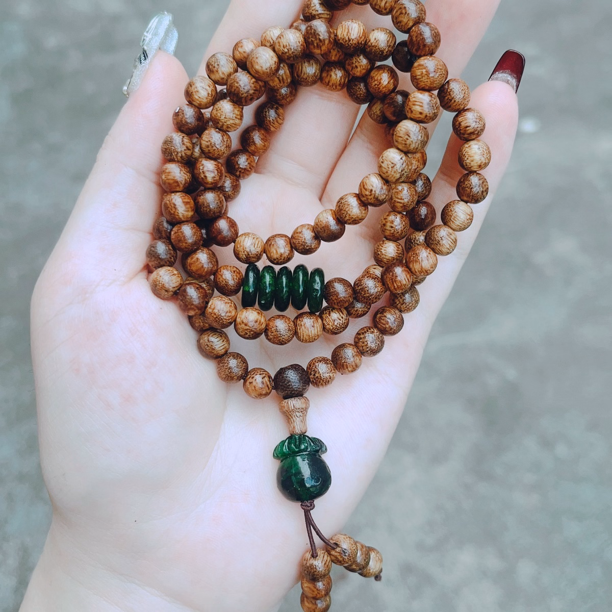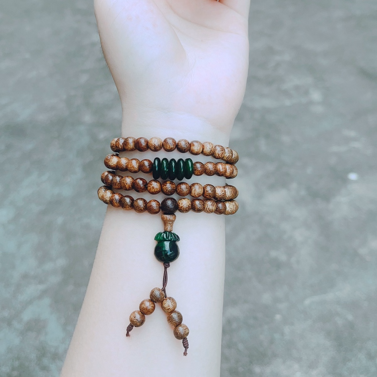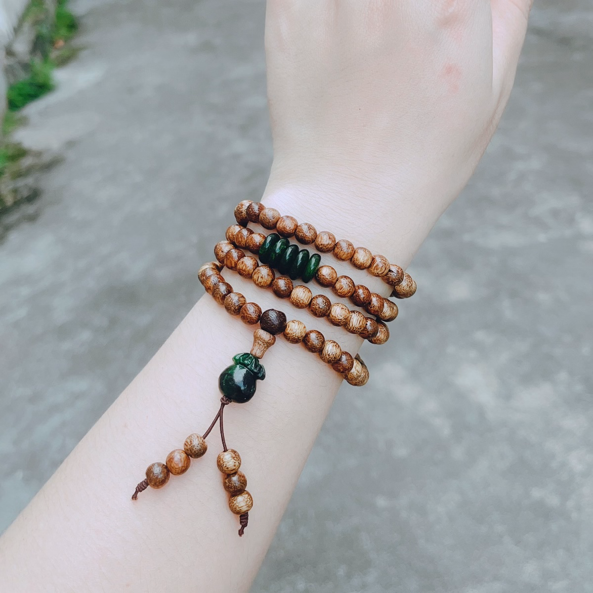Vòng Tay Trầm Hương Phối Túi Tiền Ngũ Điếu Ngọc Cẩm Thạch Thiên Nhiên – Thắng Giang