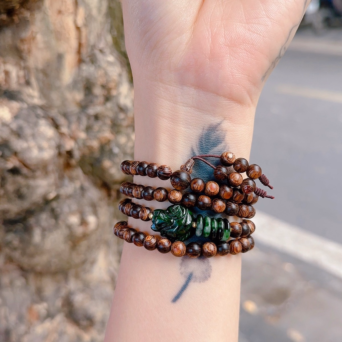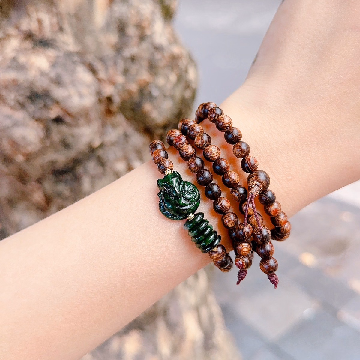 Vòng Tay Trầm Hương Sánh Chìm Phối Hồ Ly Ngũ Điếu Ngọc Cẩm Thạch Sơn Thủy Tuyp A Thiên Nhiên – Thắng Giang