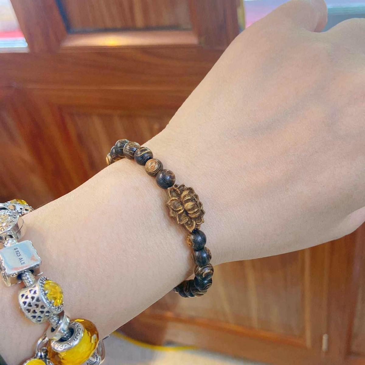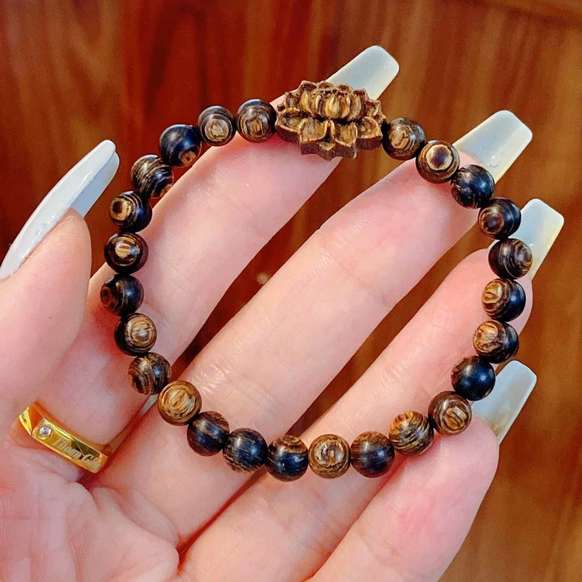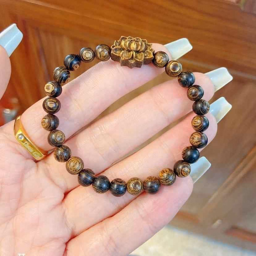 Vòng Tay Trầm Hương Sánh Chìm Phối Hoa Sen 6 Ly – Thắng Giang