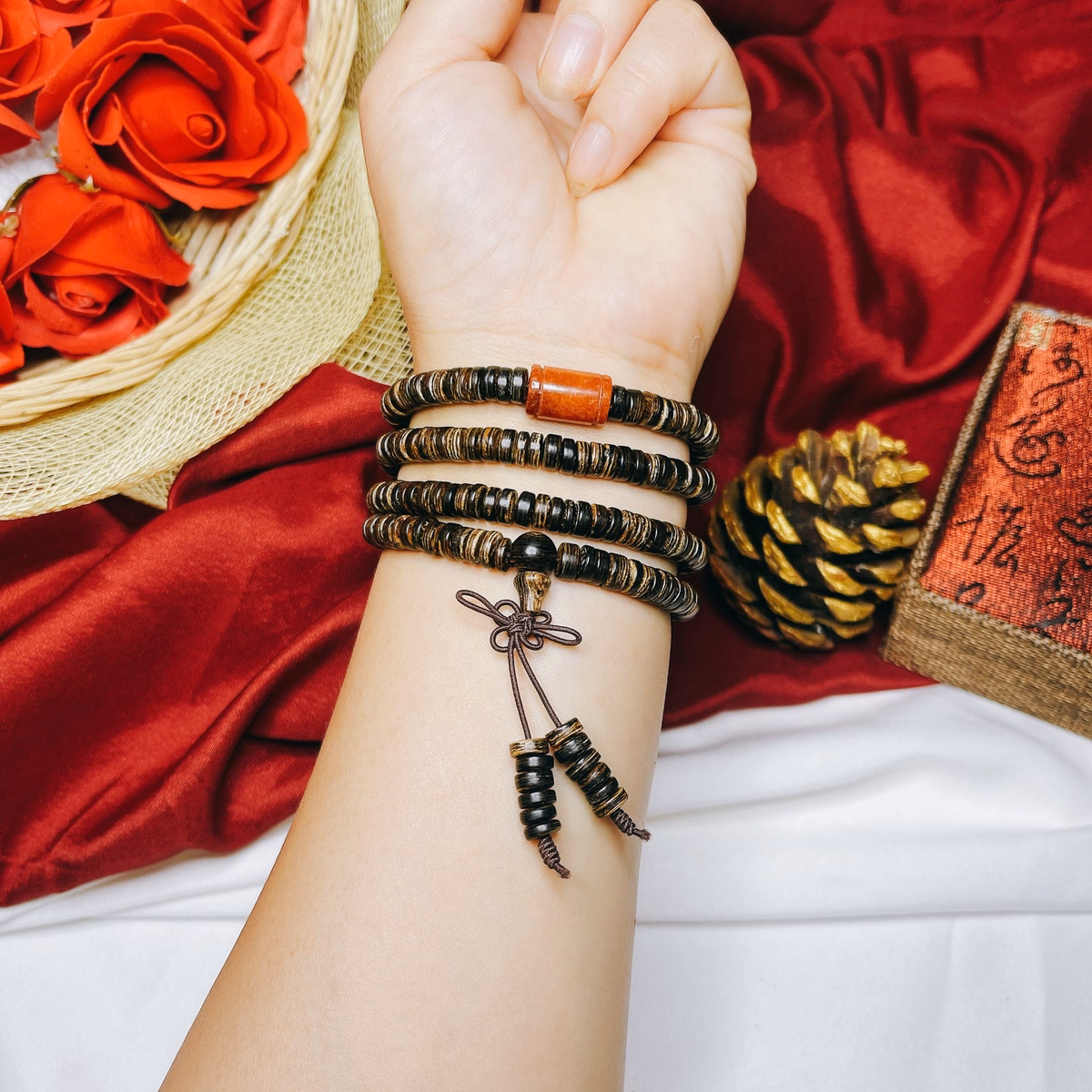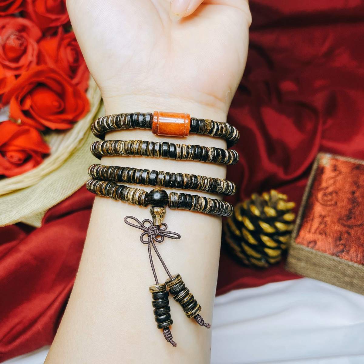 Vòng Tay Trầm Hương Sánh Chìm Phối Lu Thống Ngọc Cẩm Thạch Huyết Thiên Nhiên – Thắng Giang