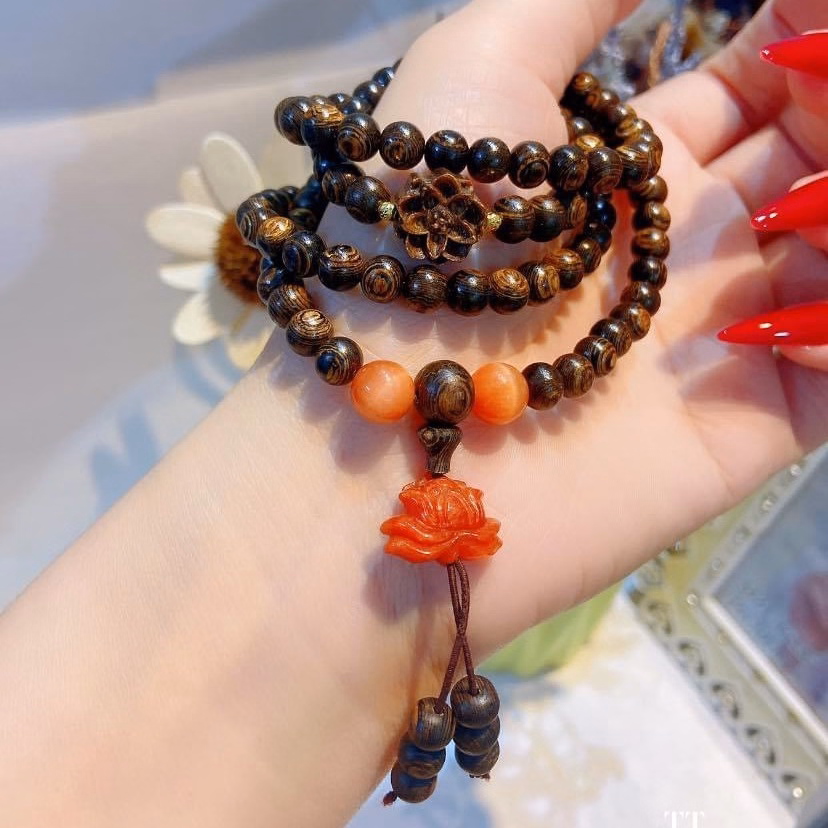 Vòng Tay Trầm Hương Sánh Chìm Phối Sen Ngọc Cẩm Thạch Huyết Thiên Nhiên – Thắng Giang