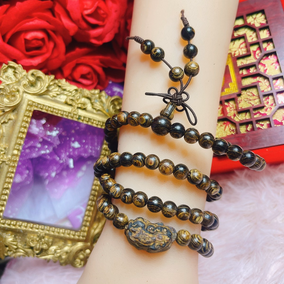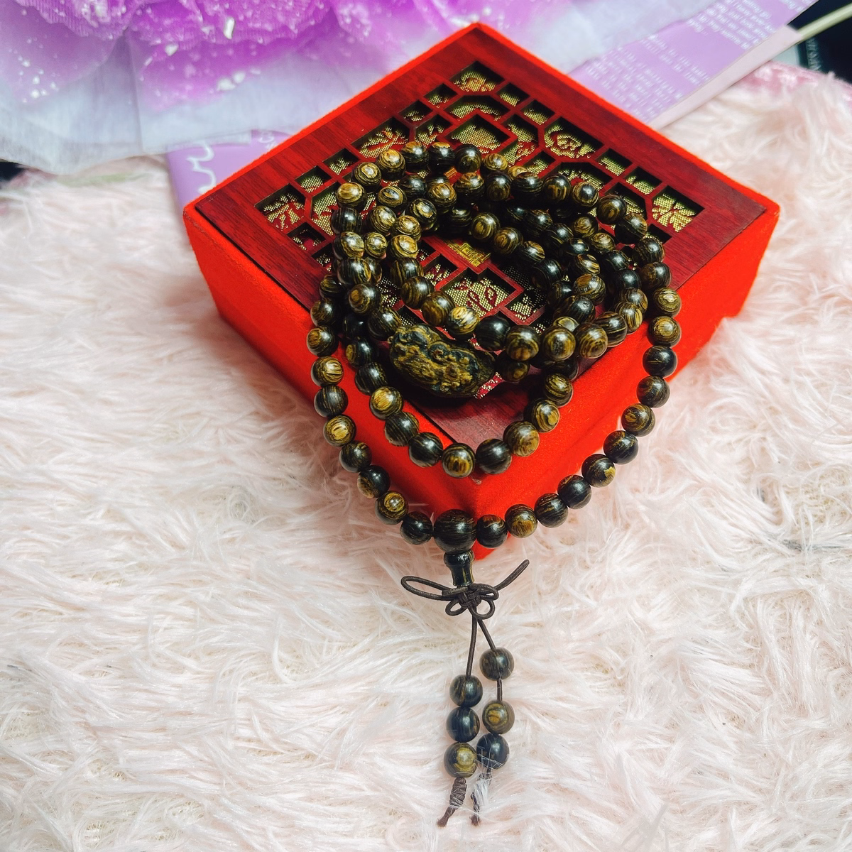Trên đời này có 1 thứ mà bạn không nên bỏ lỡ. Là chuỗi vòng Trầm đã được trì chú. Đặc tính tốt của Trầm mà ai cũng đã biết “Người xưa quan niệm rằng trầm là nơi tụ linh khí của trời đất, vượng khí trên thế gian, hấp thu tài lộc. Ngoài ra trầm chứa một lượng tinh dầu rất lớn, có khả năng tránh gió, bảo vệ sức khoẻ người dùng, thư giãn đầu óc, mang lại tinh thần thoải mái”. Chuỗi Trầm Hương 108 – Thời Trang Phong Thủy – An Nhiên Ý Nghĩa Chuỗi hạt 108 là biểu thị cho cầu chứng 108 Pháp Tam Muội. Đoạn trừ 108 loại phiền não trên đời, tạo sự bình yên trong tâm hồn, không còn bị xáo trộn bởi thị phi. Chuỗi hạt 108 là pháp khí tu hành, chứa đựng công đức giúp sinh tài khí, cải thiện phong thủy. Đây là một sản phẩm phong thủy mà bạn có thể dùng làm quà tặng cho người thân bạn bè để gửi gắm nhưng mong muốn an bình, tài lộc, may mắn và trường thọ tới họ. Bên cạnh đó, chuỗi hạt Trầm hương 108 hạt còn giúp xua tan các mùi khó chịu xung quanh, thanh lọc môi trường mà bạn đang sống.