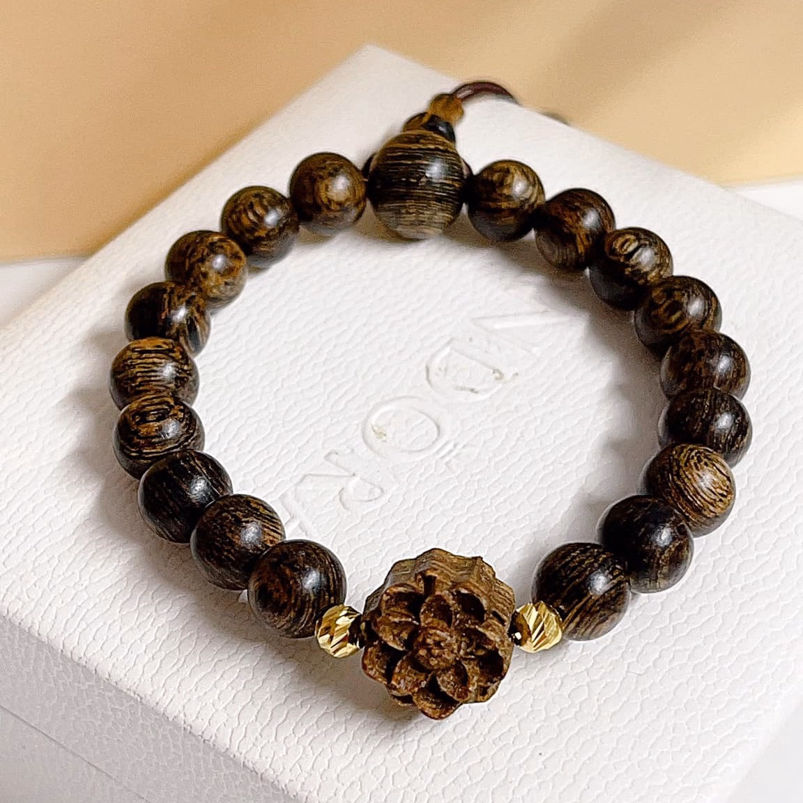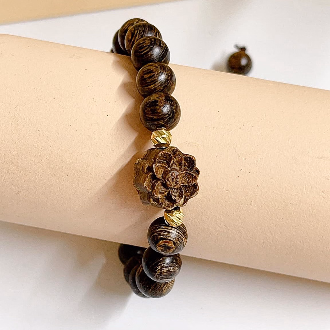 Vòng Tay Trầm Hương Sánh Thiên Nhiên 8 Ly Gắn Hoa Sen – Thắng Giang