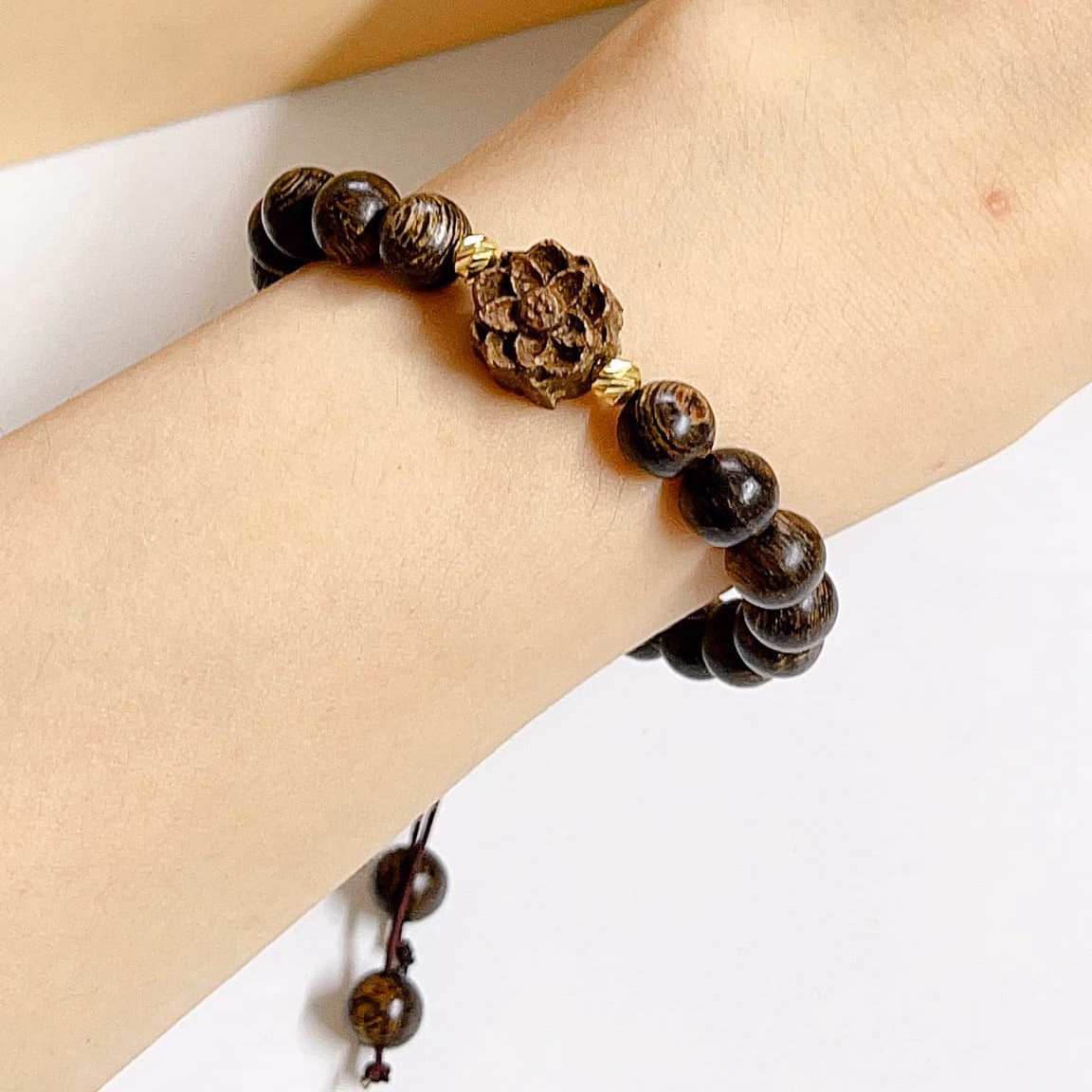 Tên sản phẩm: Vòng Tay Trầm Hương Sánh Chìm Phối Sen Thơm Dịu Nhẹ 8 Ly – Thắng Giang