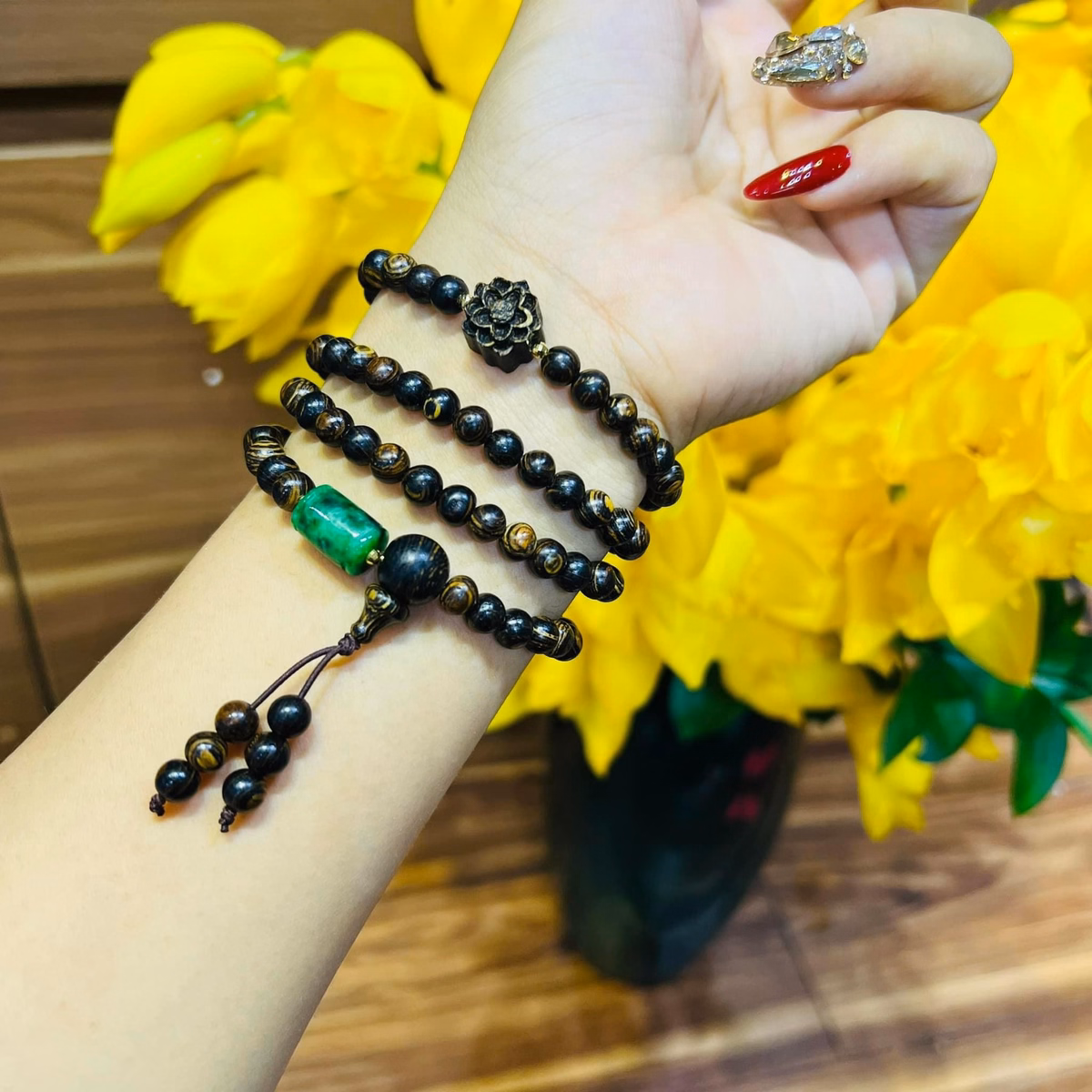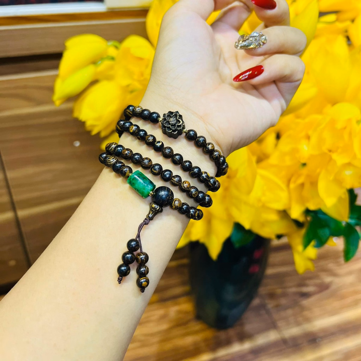 Vòng Tay Trầm Hương Sánh Thiên Nhiên Kết Lu Cẩm Thạch – Thắng Giang