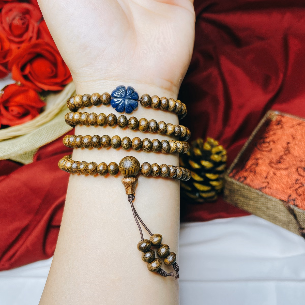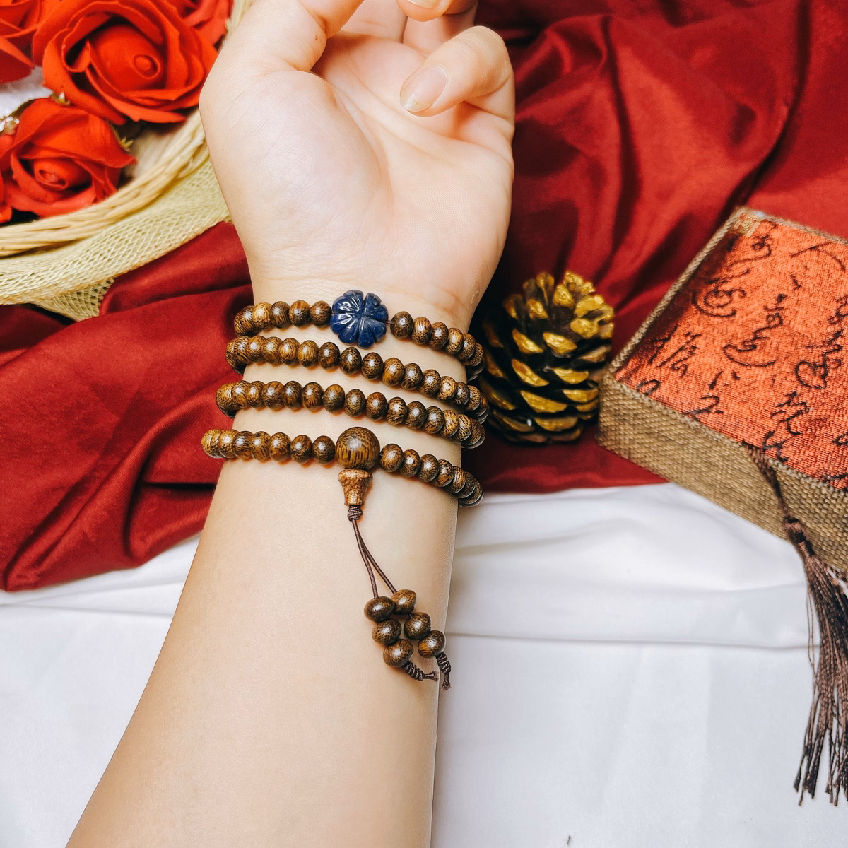 Vòng Tay Trầm Hương Tốc Dẹt Phối Cỏ Bốn Lá Lapiz Thiên Thanh – Thắng Giang